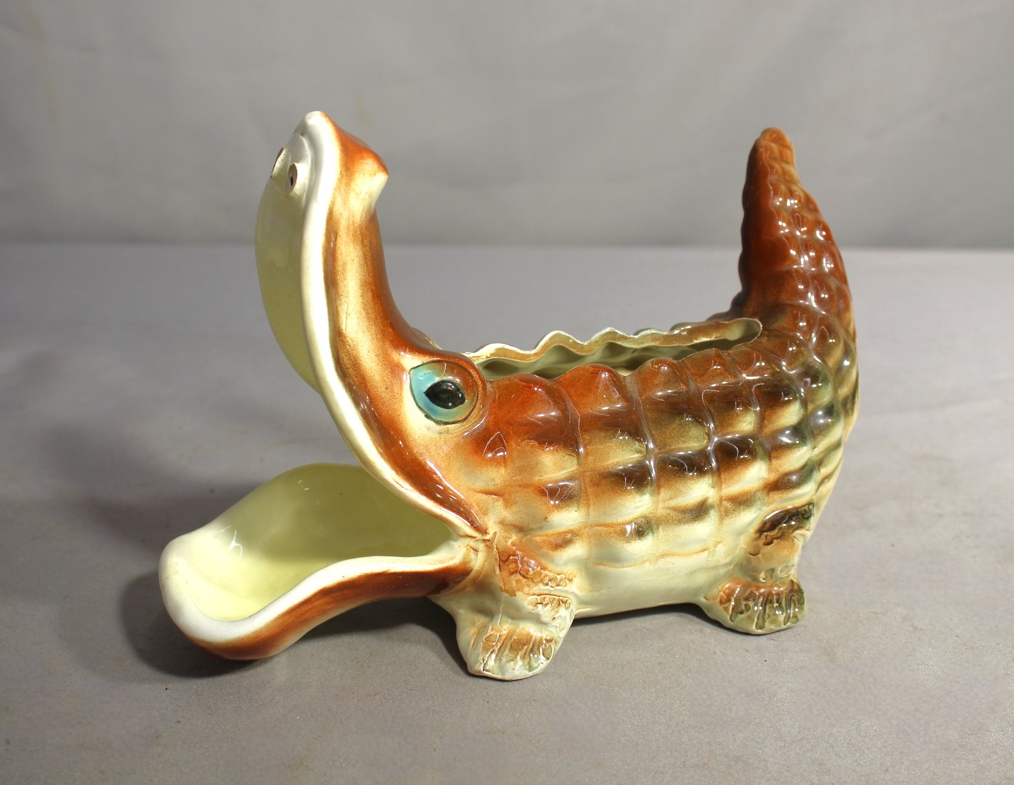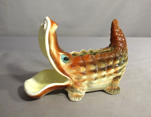 Vintage Ceramic Alligator Planter- Missing His Front Tooth