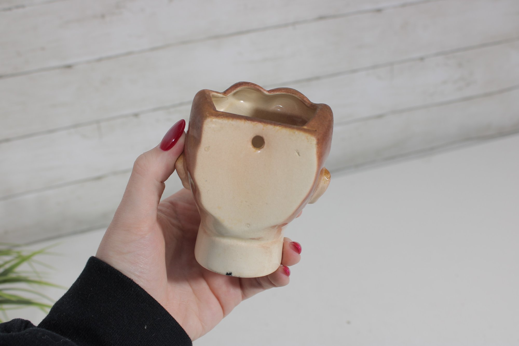 Measuring approximately 4” tall, this compact wall pocket adds a touch of character and retro charm to any space. The expressive facial details and warm tones make it a standout accent for kitchens, entryways, or gallery walls.