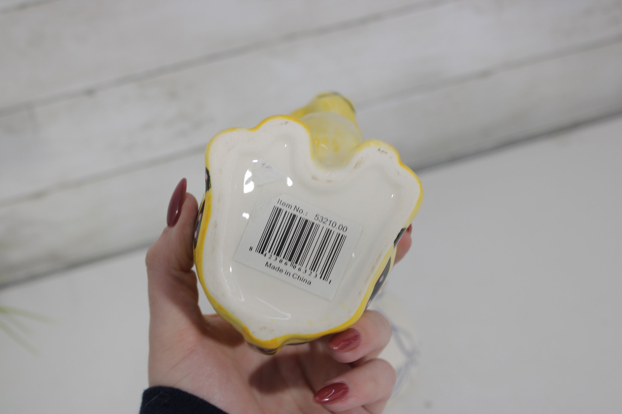 Bright yellow glaze with hand-painted details