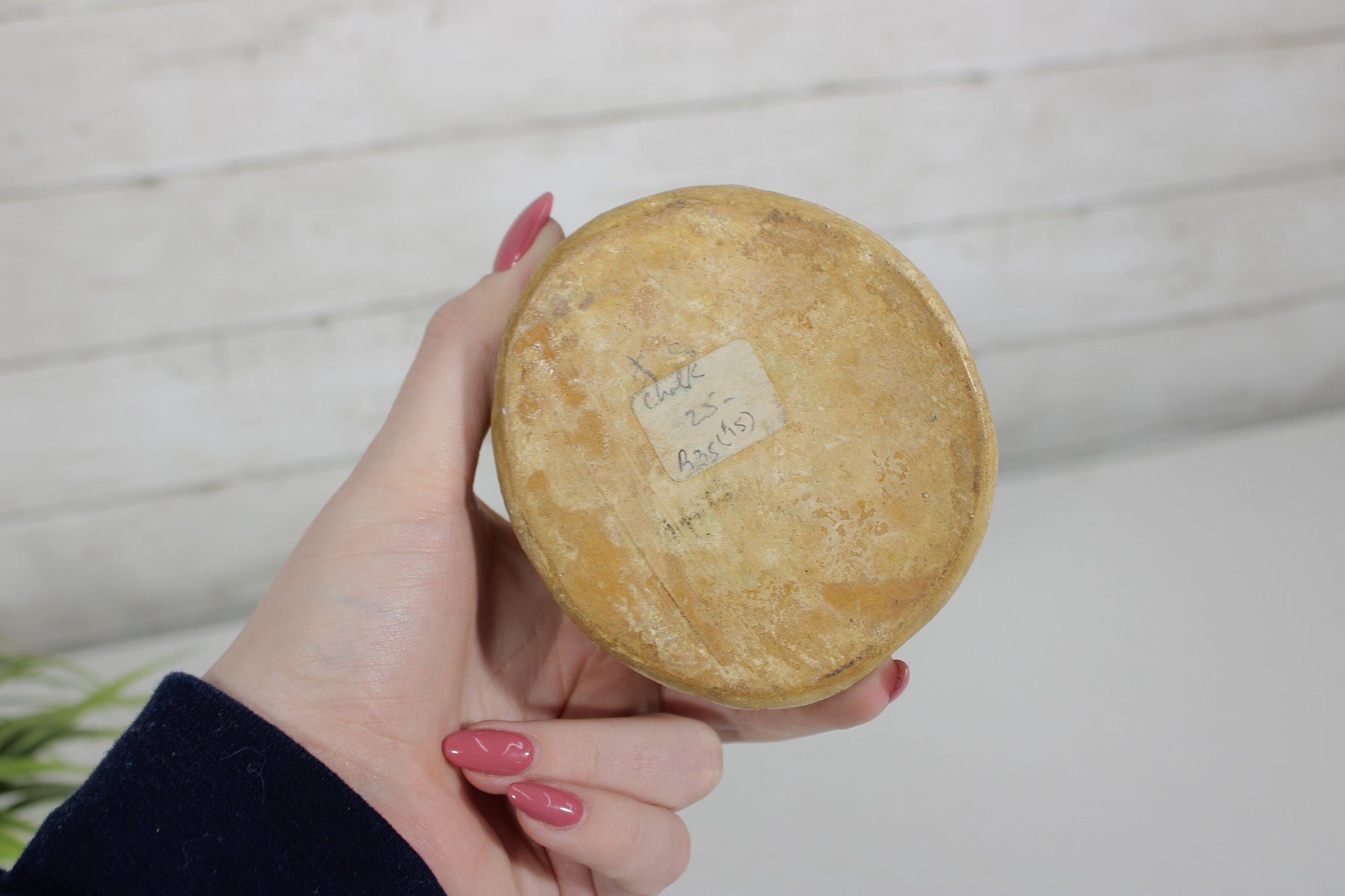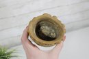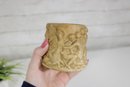 The piece has a warm stone-like finish that resembles carved plaster or antique stone, making it a lovely decorative accent for a shelf, desk, or tabletop display. Its compact size makes it perfect for small flowers, dried arrangements, or as a decorative holder.