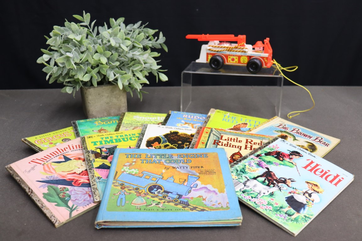 Vintage Children's Books (little Golden) And A Fisher-Price Fire Engine