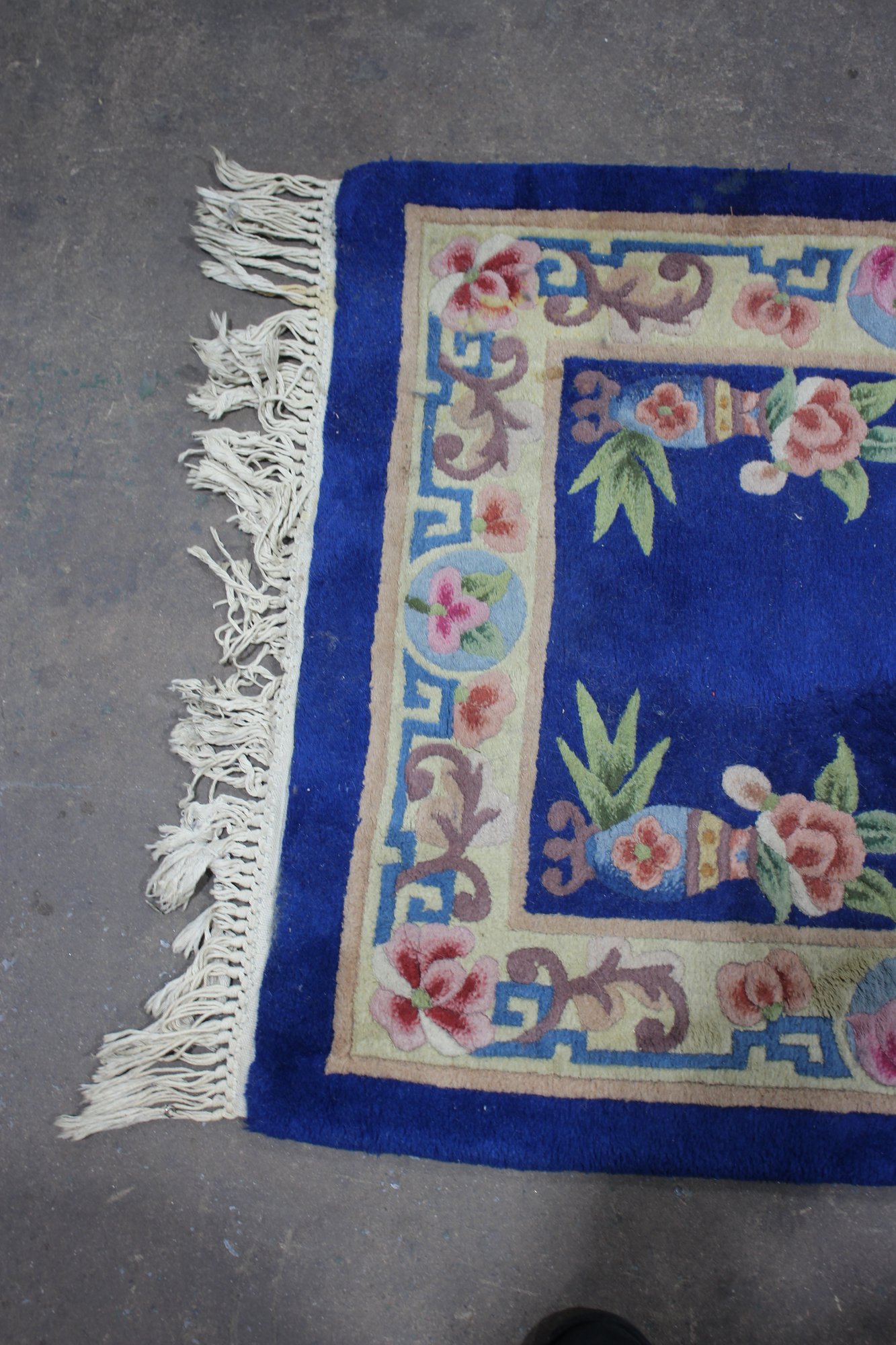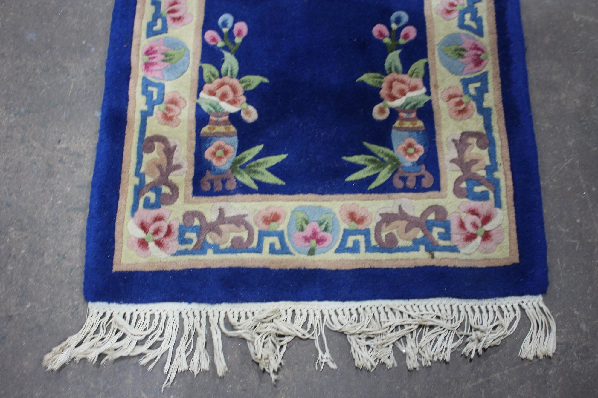 Crafted from soft wool, this runner offers both beauty and durability. The intricate design reflects traditional Chinese artistry with a timeless floral motif. It is finished with white fringe on both ends, enhancing its classic appeal.