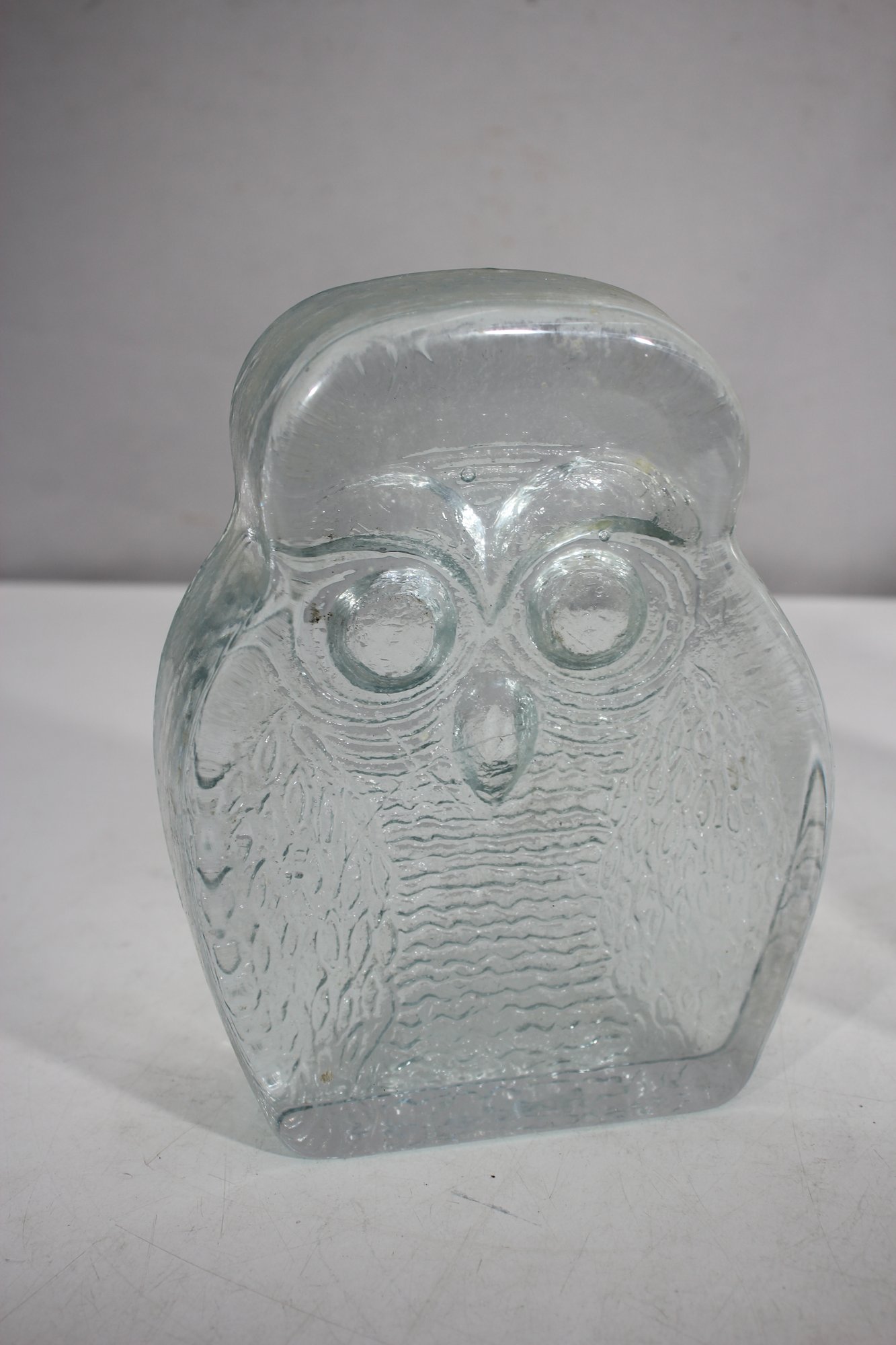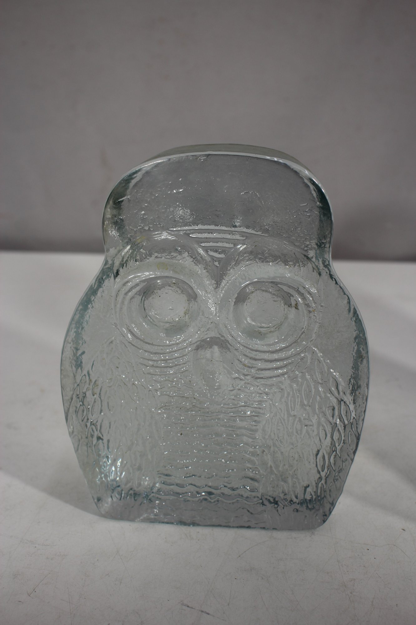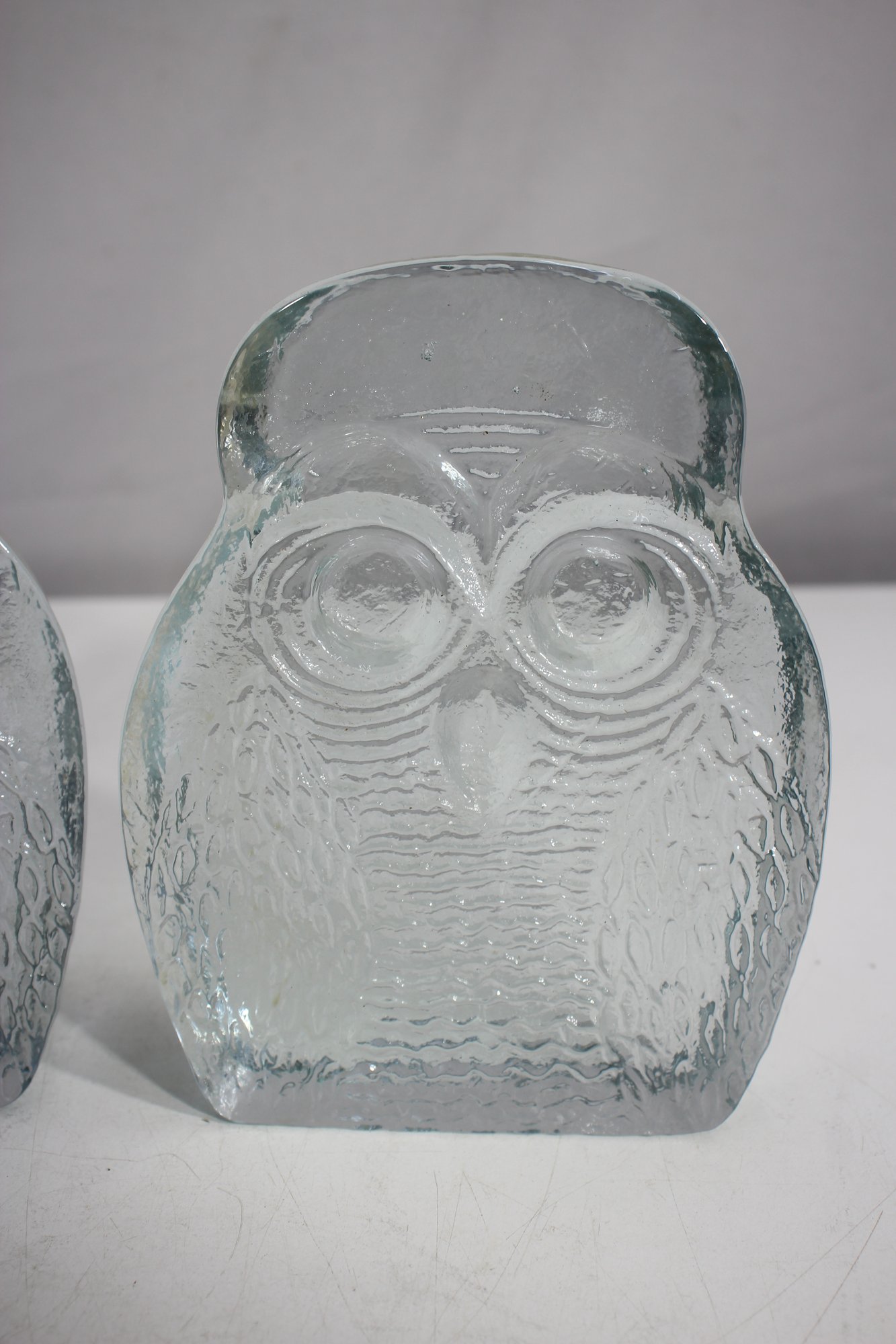 Add a touch of wisdom and charm to your bookshelf with this stunning pair of vintage clear glass owl bookends. These beautifully textured glass pieces showcase intricate feather detailing and large, round eyes, making them both functional and decorative.