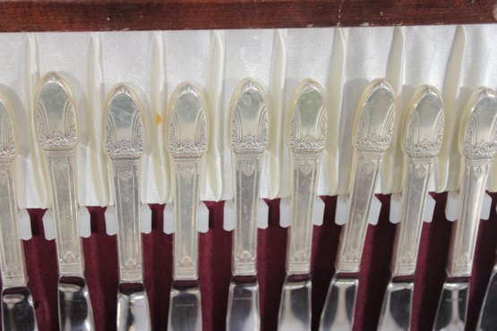 The set includes a selection of knives, forks, and spoons, neatly organized within the fitted case. While not a complete service, it offers a great assortment of usable and collectible pieces