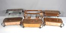 Enhance your entertaining with this stunning set of six vintage chafing dishes and warmers. Crafted from a mix of copper and brass, these pieces feature elegant perforated lids, ornate feet, and dual-burner compartments for even heating. One stand is uniquely designed with curving legs and a removable frame, adding a touch of sophistication to any table setting.