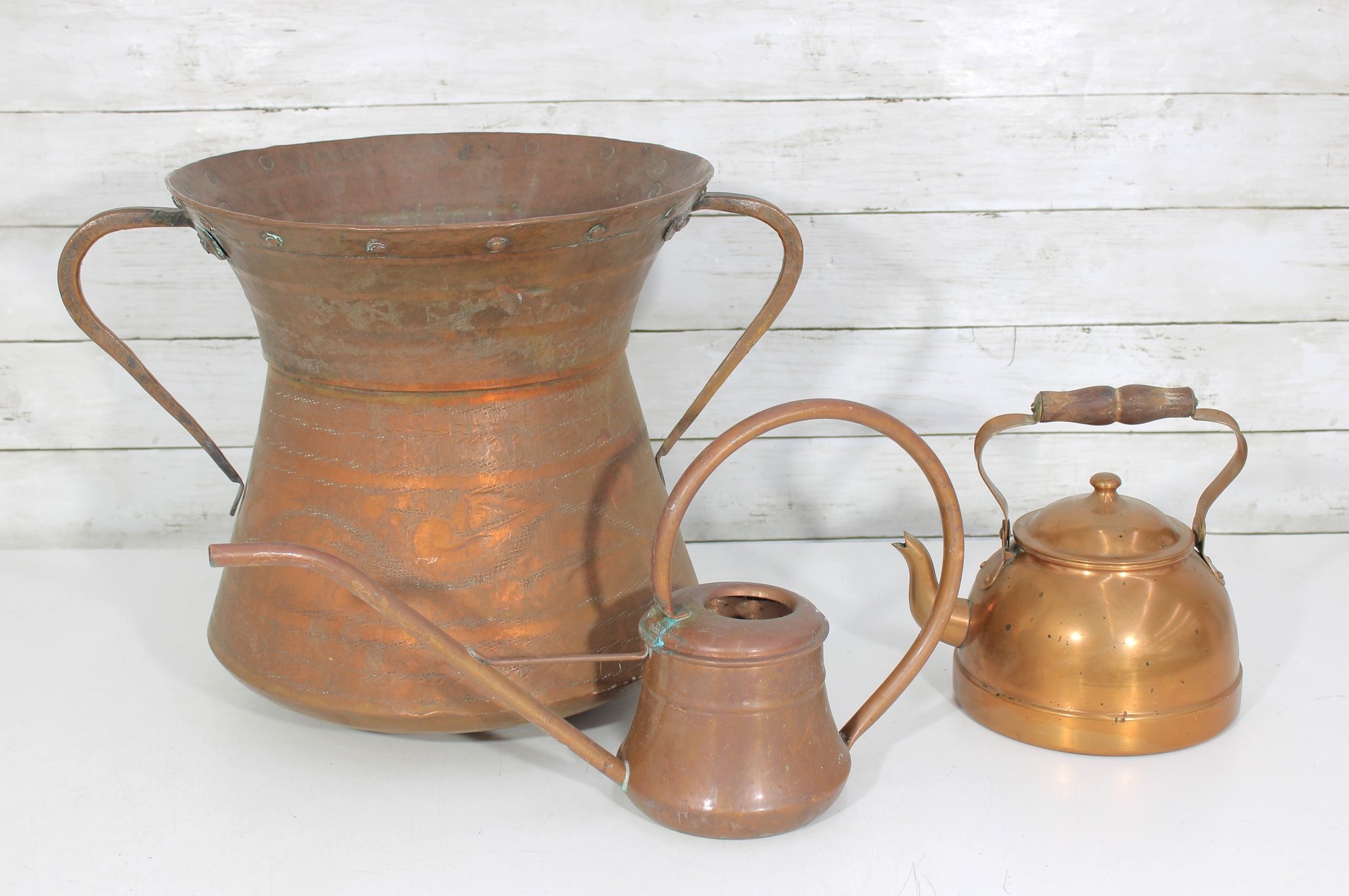 • Vintage Copper Watering Can – Classic long spout design with curved handle and rounded body. A lovely display piece for garden décor or kitchen styling.