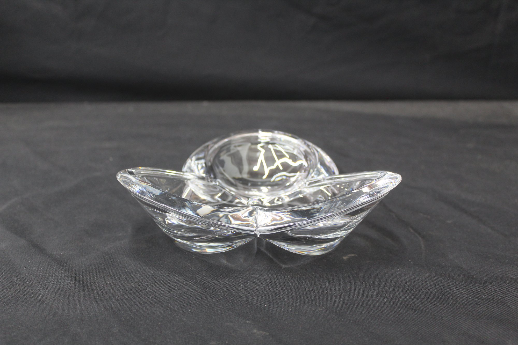 Vintage Crystal Tri-Petal Dish - Signed Design Escape