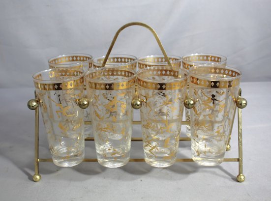 Vintage Culver Glassware Set With Gold Gilded Design And Carrier