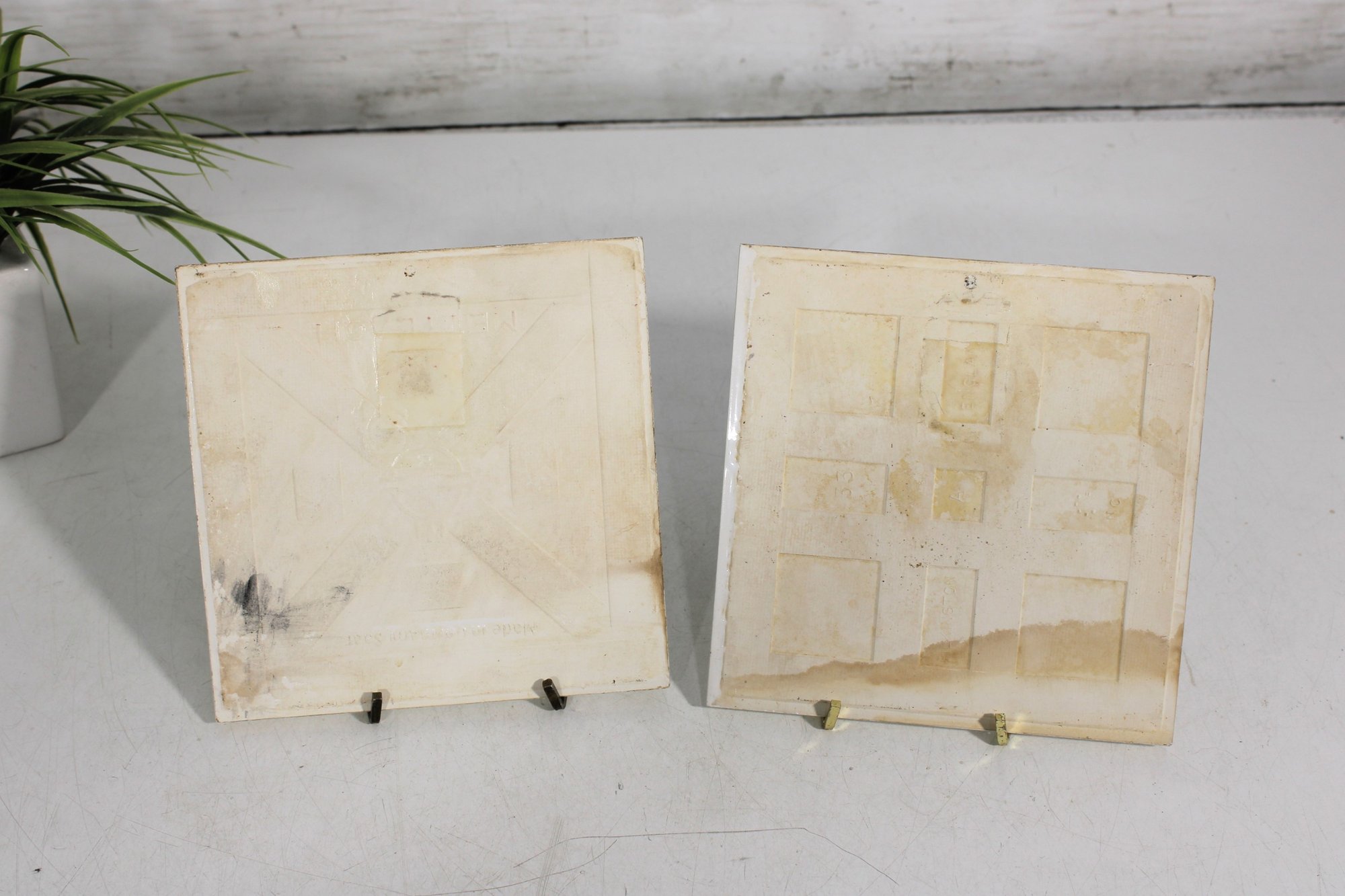 These decorative tiles have a glossy finish and are mounted on backing (as shown), making them suitable for use as trivets or display pieces. The nostalgic Americana imagery makes them a wonderful addition to farmhouse, country, or traditional décor.