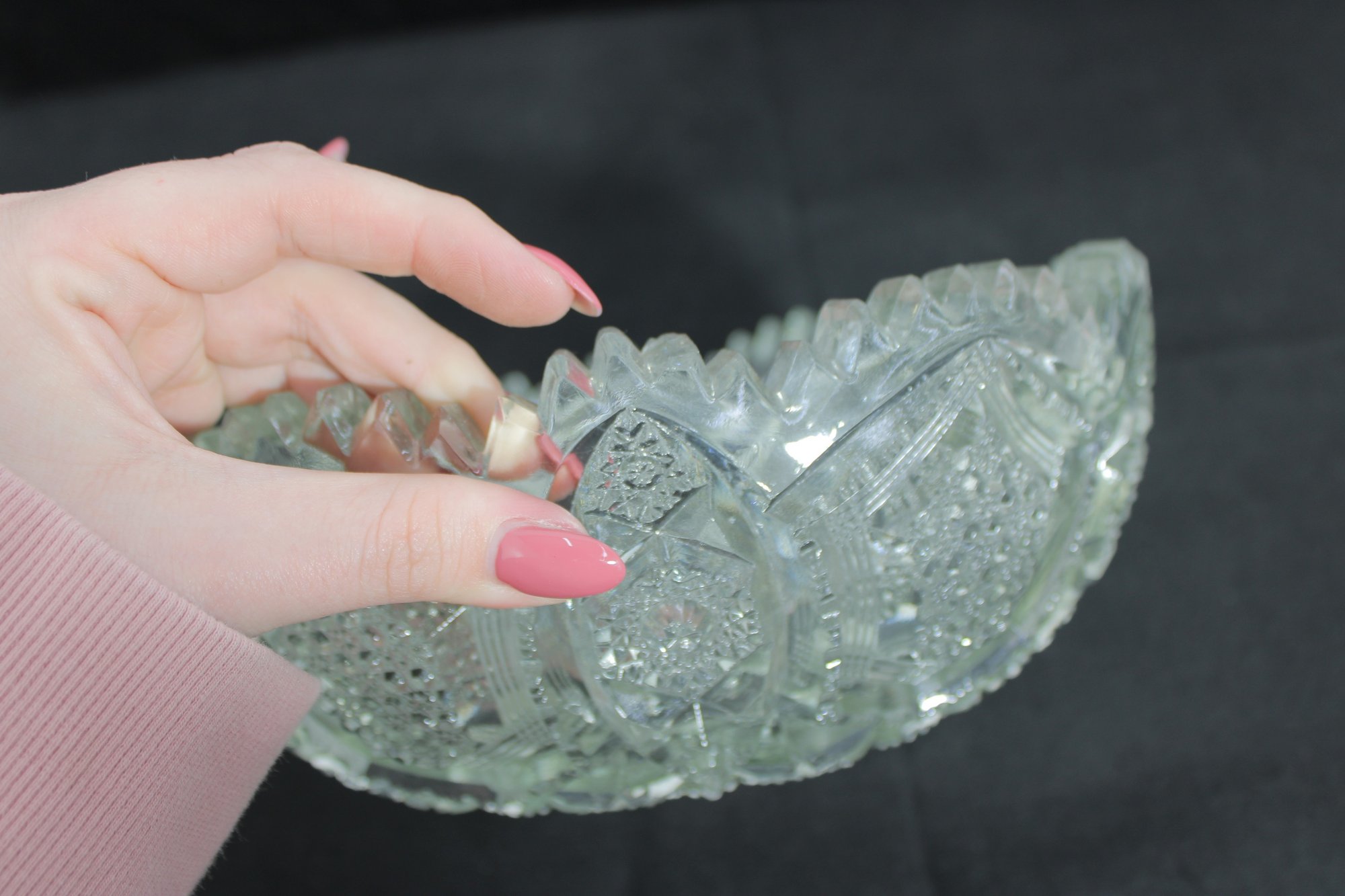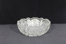 With its wide, shallow form, this bowl makes an eye-catching centerpiece or decorative display piece. The detailed craftsmanship gives it a classic, elegant presence despite noted imperfections.