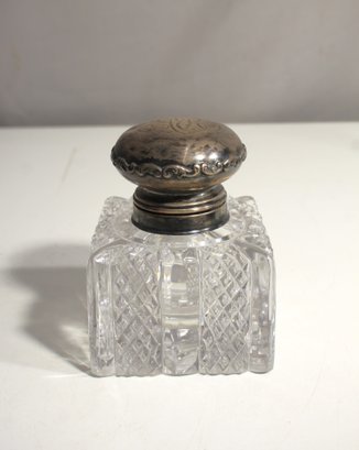 Vintage Cut Glass Sterling Silver Topped Inkwell