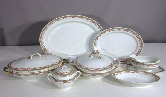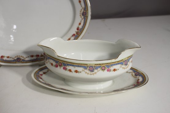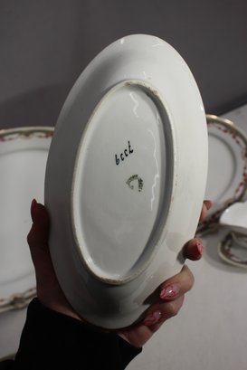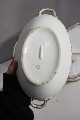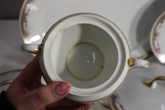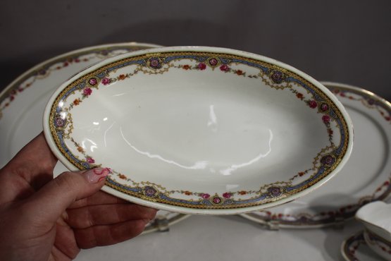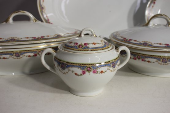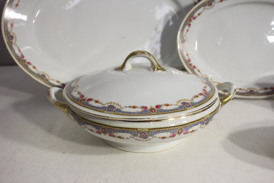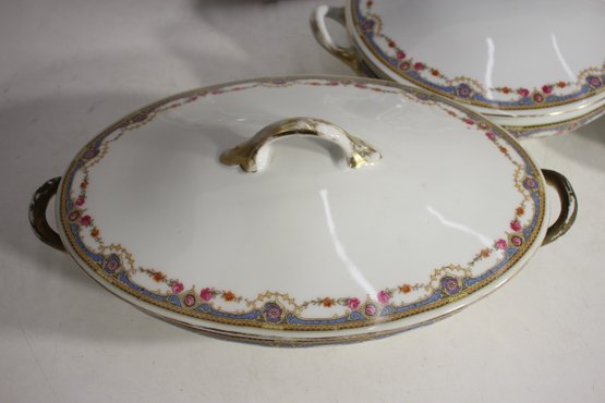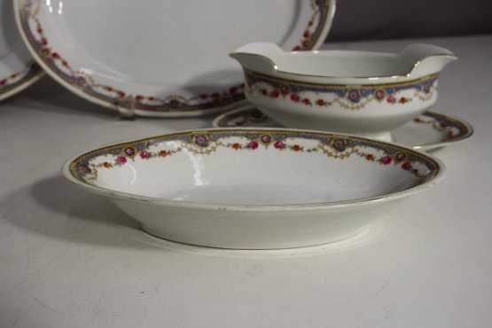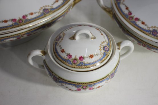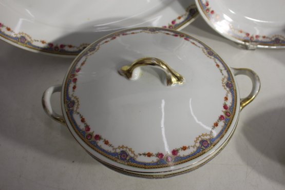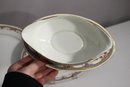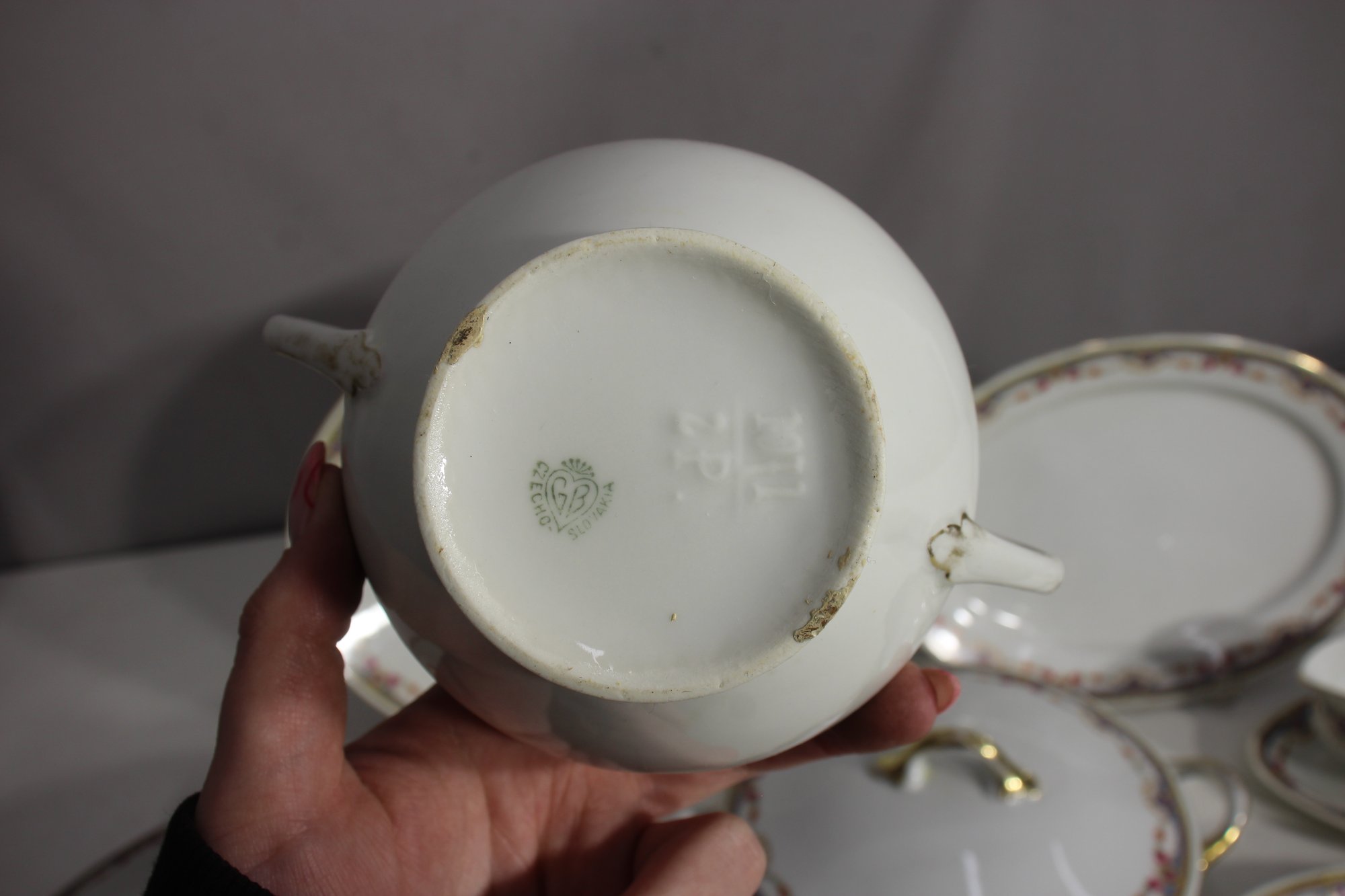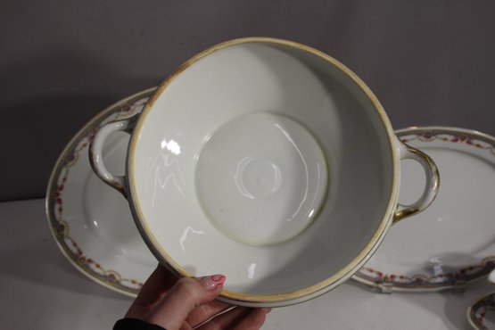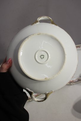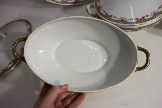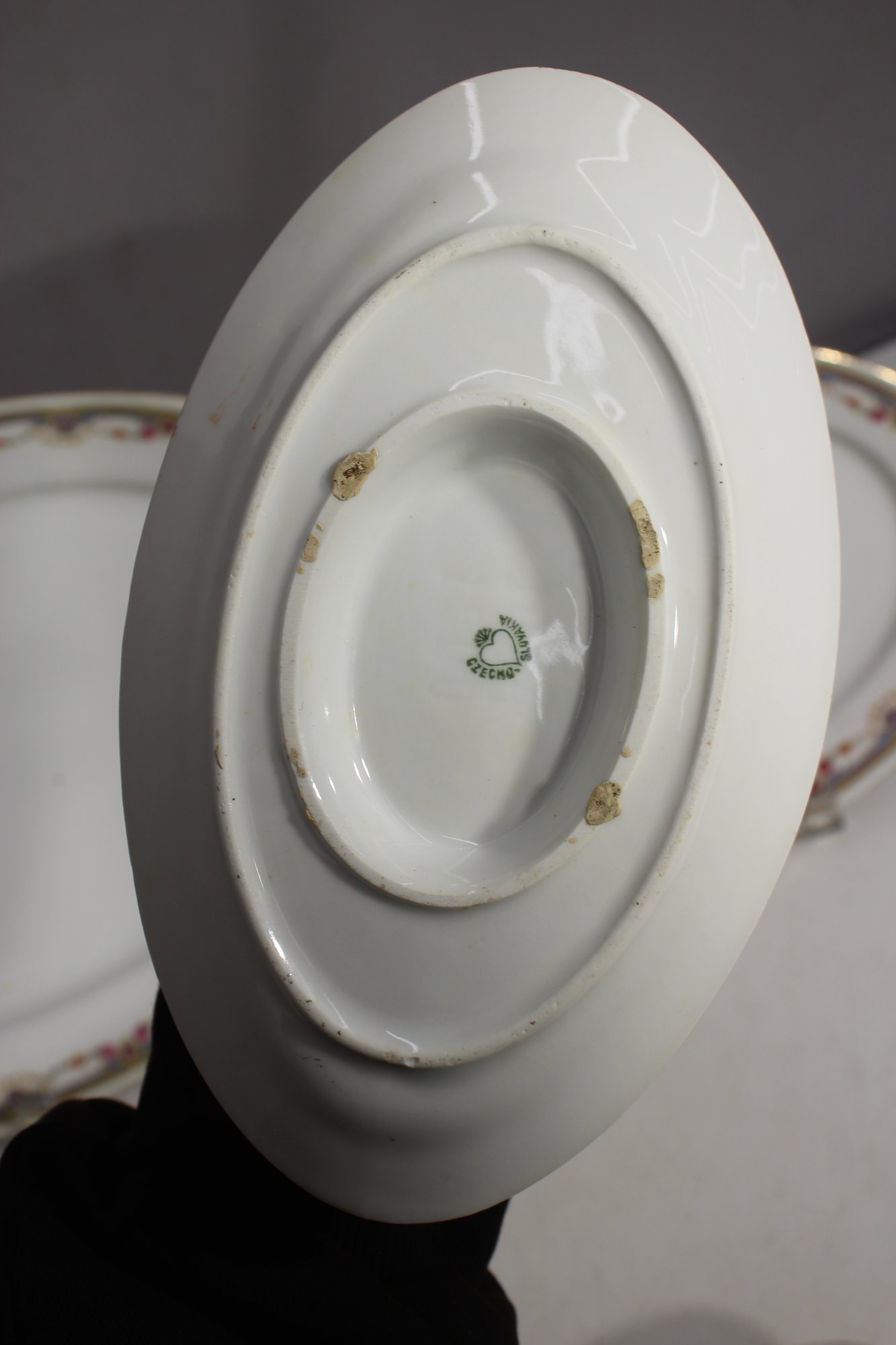 vintage Czechoslovakian fine china serving set features delicate floral patterns with gold trim on a white porcelain base. A beautiful set for formal dining, antique china collectors, or vintage kitchen décor.