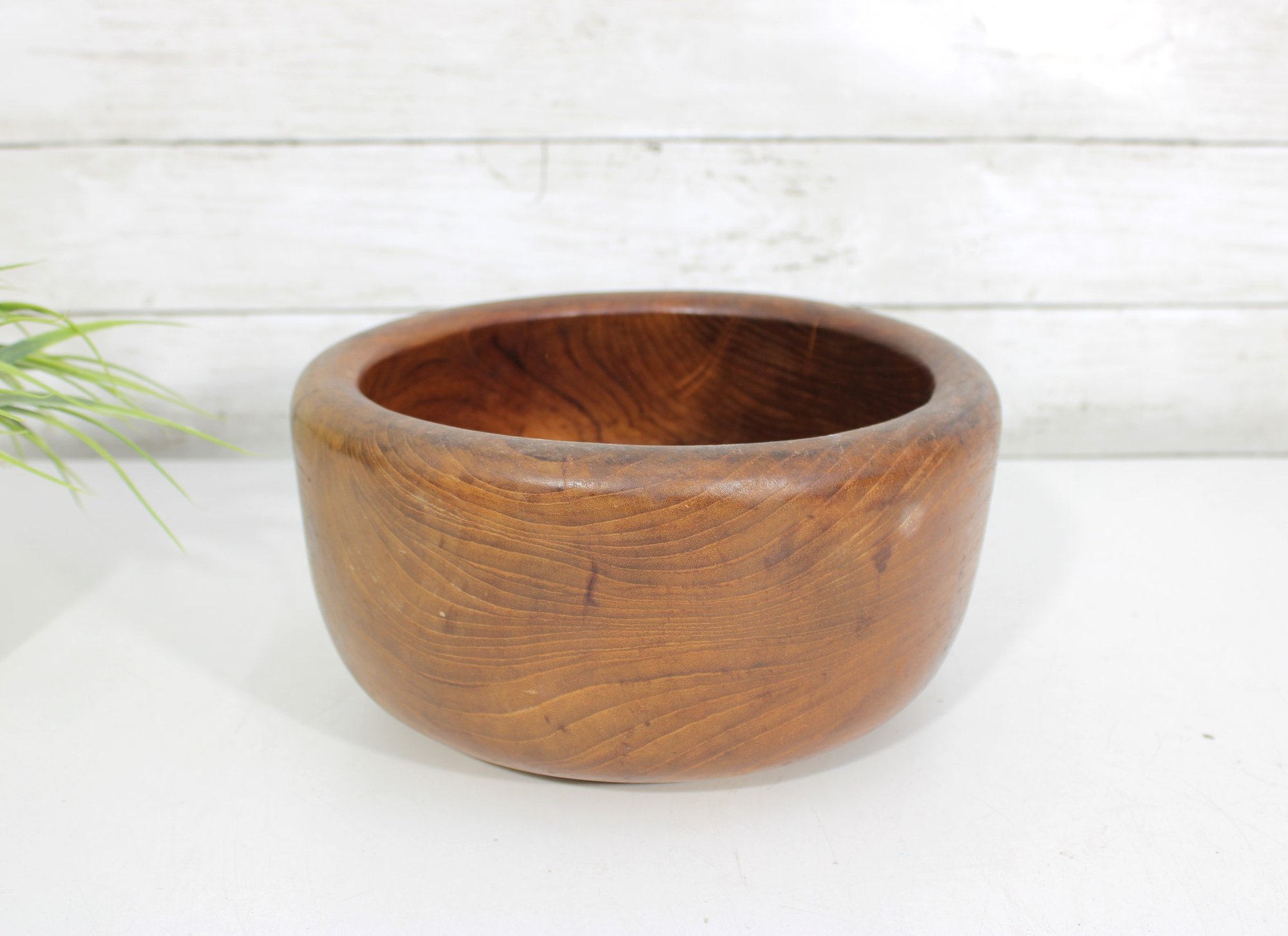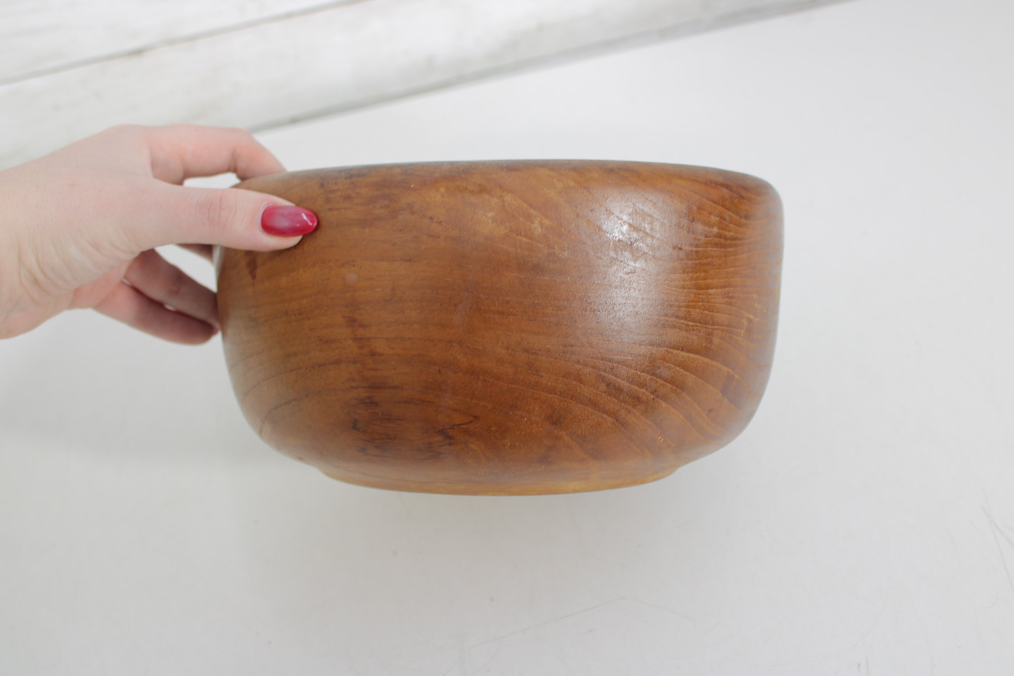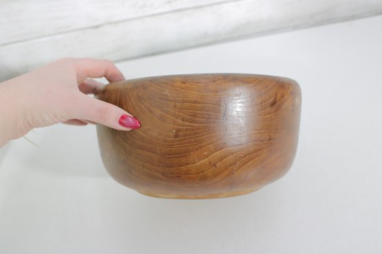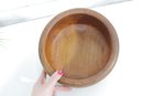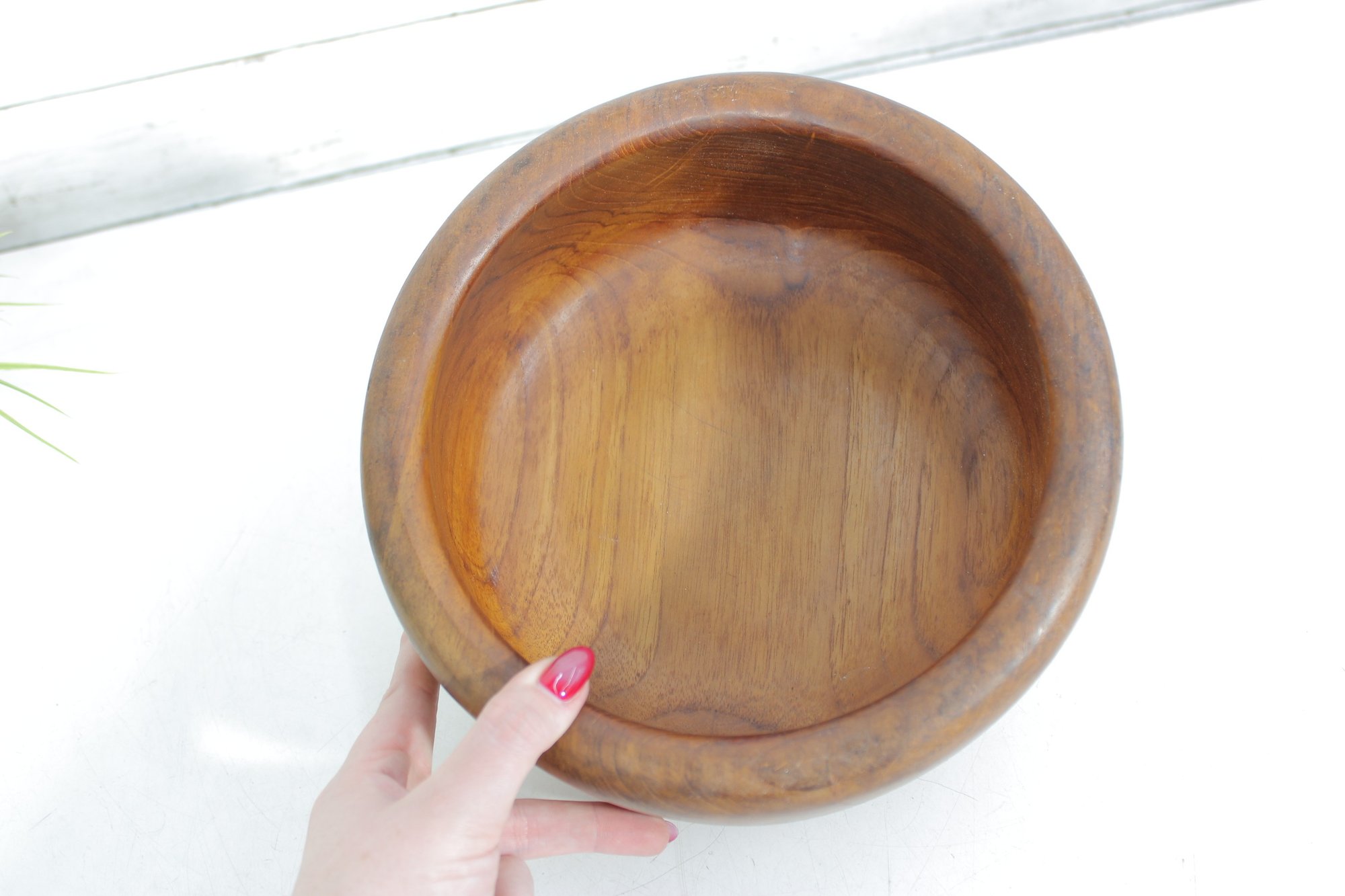 Classic mid-century modern teak wood bowl by Dansk, featuring a beautifully rounded form and rich natural grain. This timeless piece showcases the warmth and simplicity of Scandinavian design, making it perfect for both functional use and display.