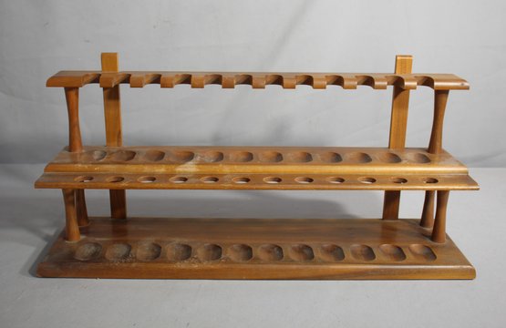 This stand not only serves as a practical organizer for a pipe collection but also doubles as a statement piece of decor. The natural grain of the walnut is highlighted throughout, with a warm, inviting sheen that only authentic vintage wood can provide.
