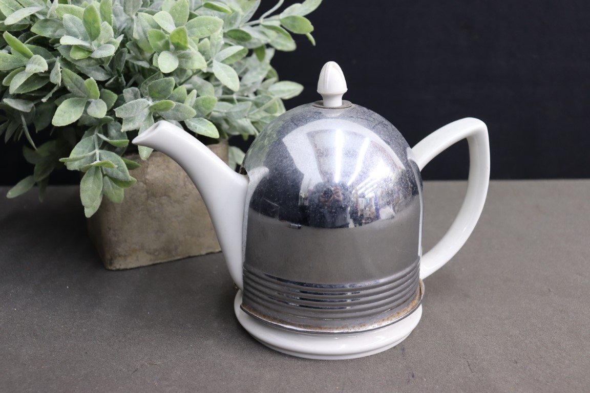 Vintage Deco Metal Jacketed Teapot By Hall China Co.