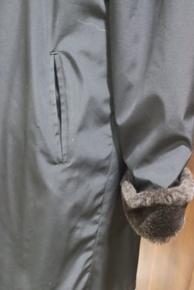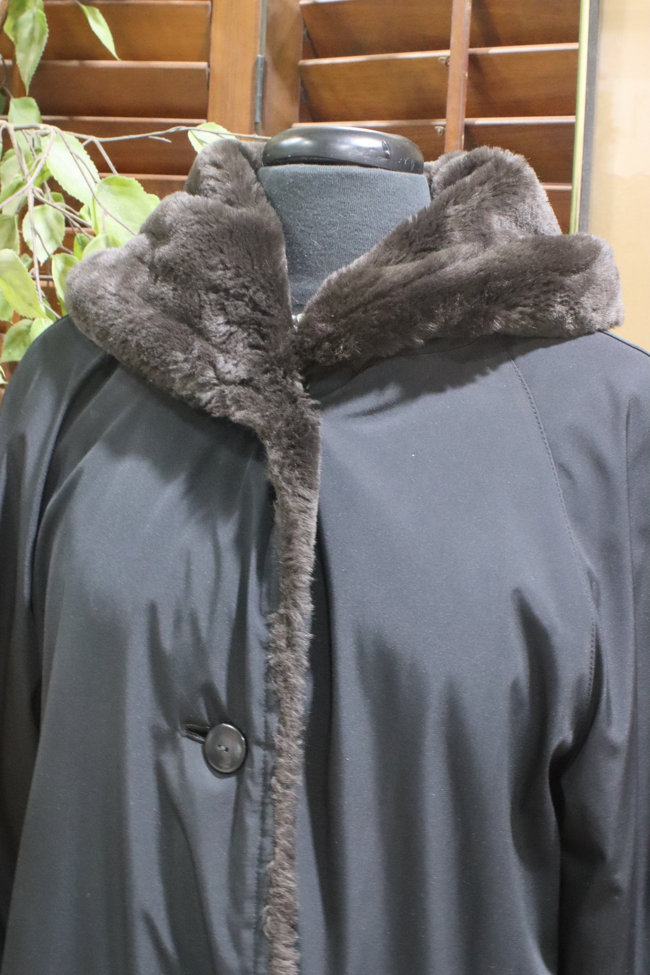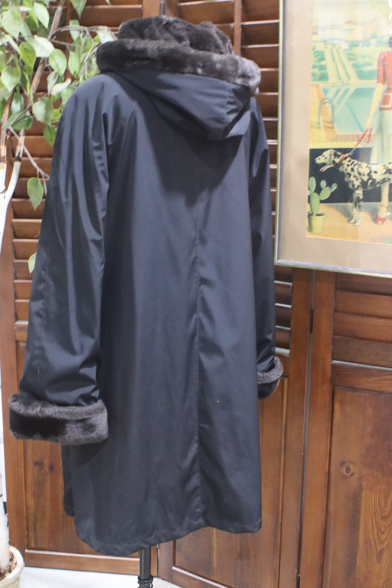 vintage Drizzle all-weather coat, designed for both elegance and functionality. Featuring a luxurious faux fur trim on the collar, cuffs, and front closure, this coat provides chic sophistication while keeping you protected from the elements.