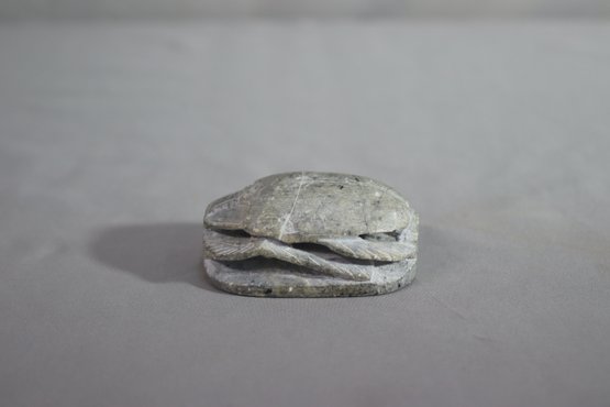 Vintage Egyptian Scarab Beetle Grey Marbled Soapstone Paperweight