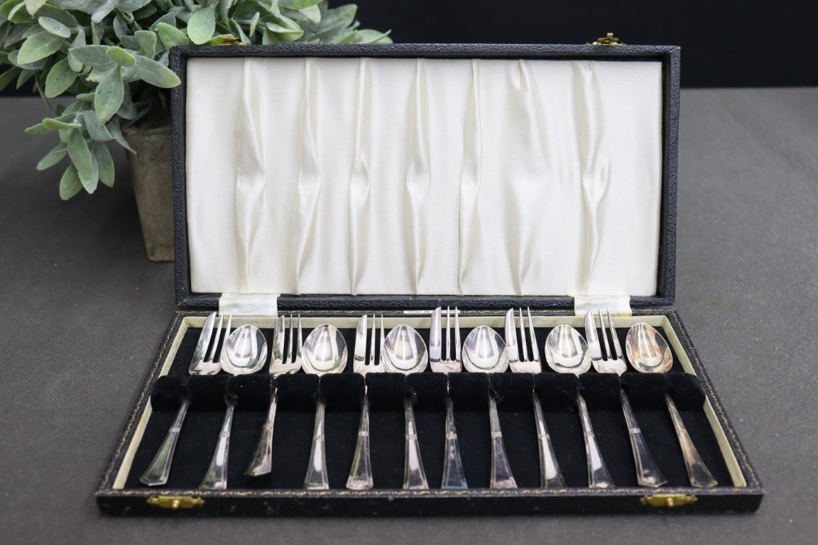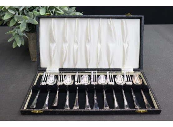 Vintage English Fish Service Fork & Spoon Set - Six Settings In Lined Box
