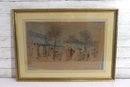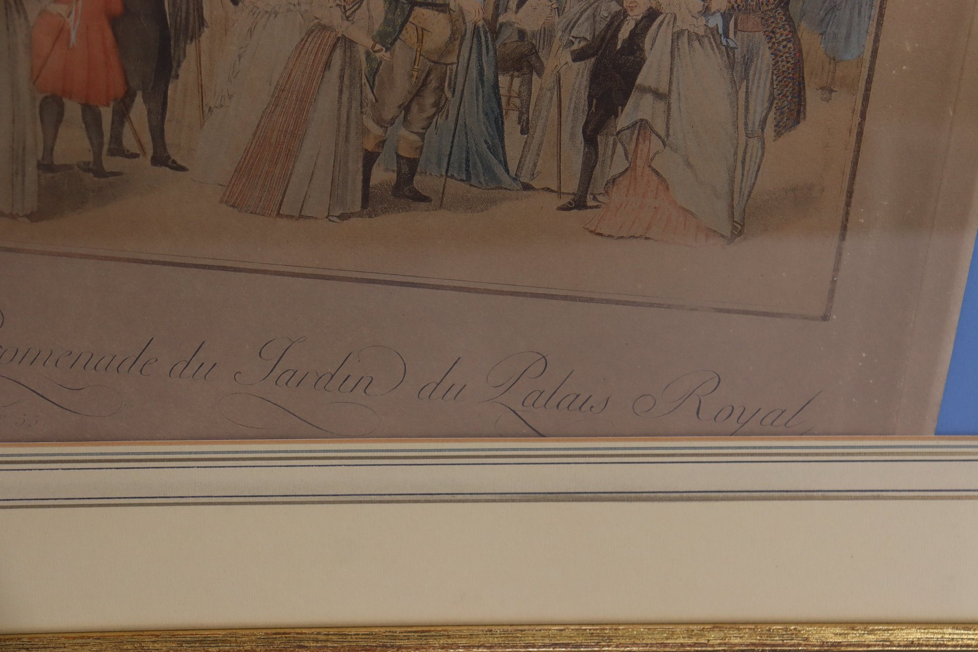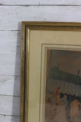 The scene is rendered in a delicate illustrative style, evoking late 18th to early 19th century French genre imagery. It is presented in a classic gold-tone frame with matting, making it well suited for traditional interiors, libraries, dining rooms, or gallery walls