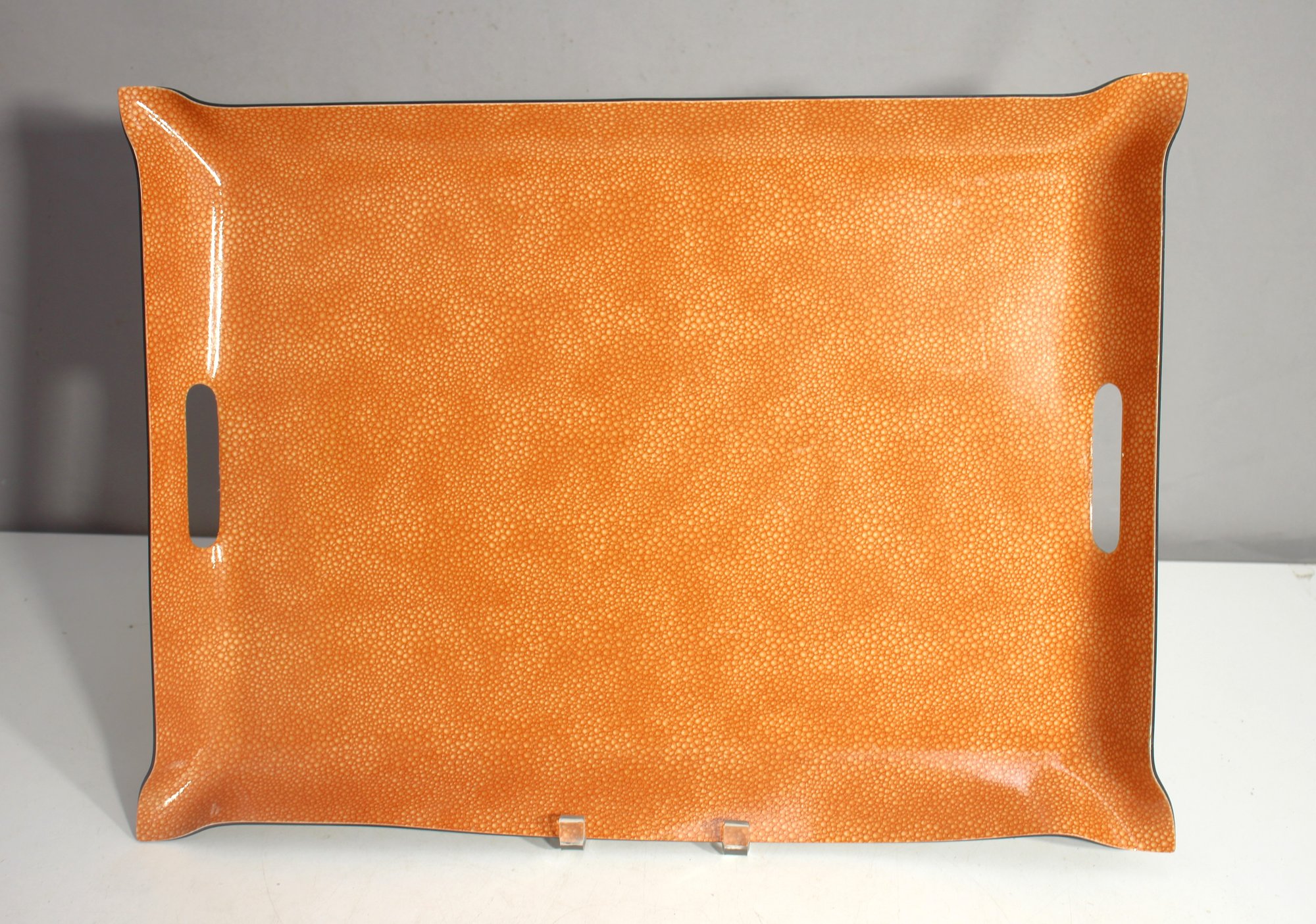 With cut-out handles on each side, this tray is both functional and decorative, ideal for hosting or adding a sophisticated touch to your home. The black underside provides a contrasting base, complementing the retro-inspired aesthetic.