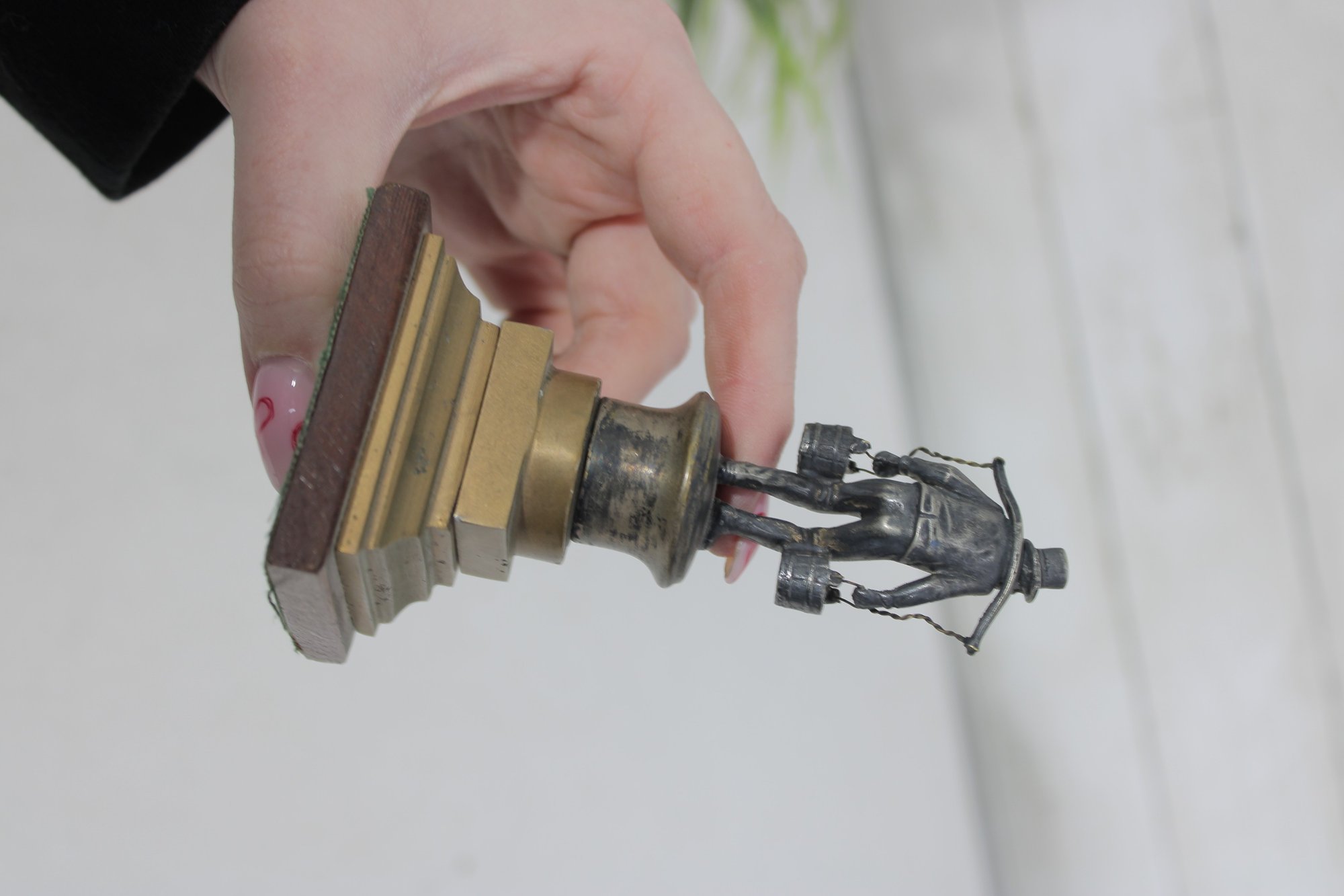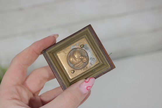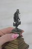 The sculpture has an aged patina consistent with vintage metalwork and displays well from all angles. Its compact size makes it ideal for desk, shelf, or display cabinet placement, while still offering excellent detail.