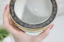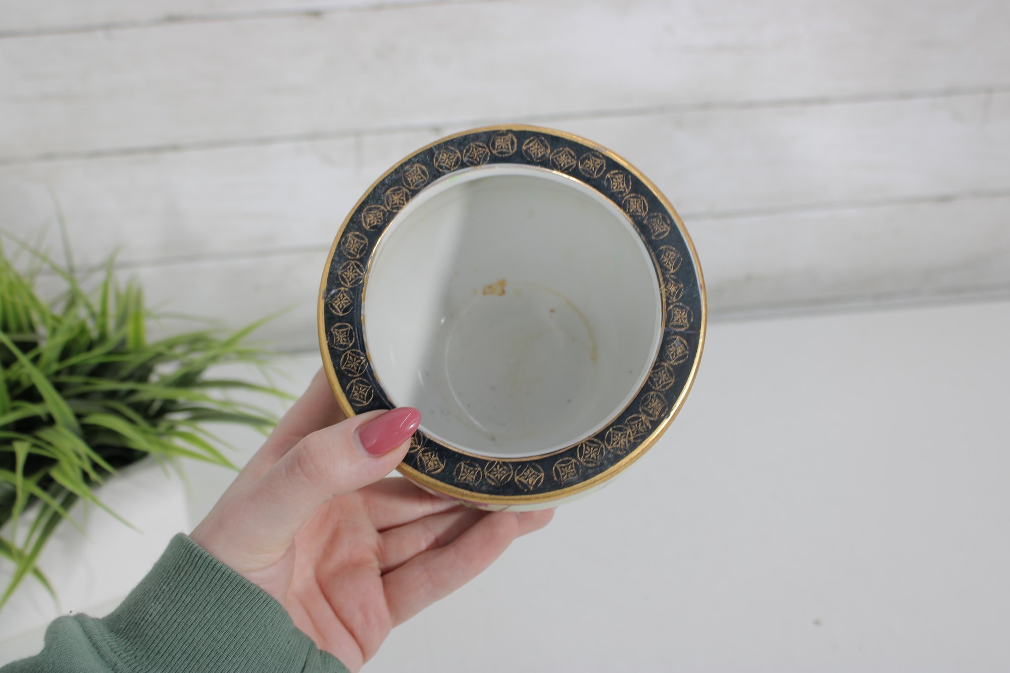 The interior features a decorative patterned band near the rim, adding an extra touch of refinement. Perfect for use as a small planter, vase, or decorative accent piece.