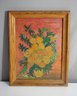 The painting is housed in a simple yet elegant wooden frame that complements its rustic and vintage appeal. The artwork’s impasto technique gives the flowers a tactile, dimensional feel, making it a striking piece for collectors and lovers of floral art.