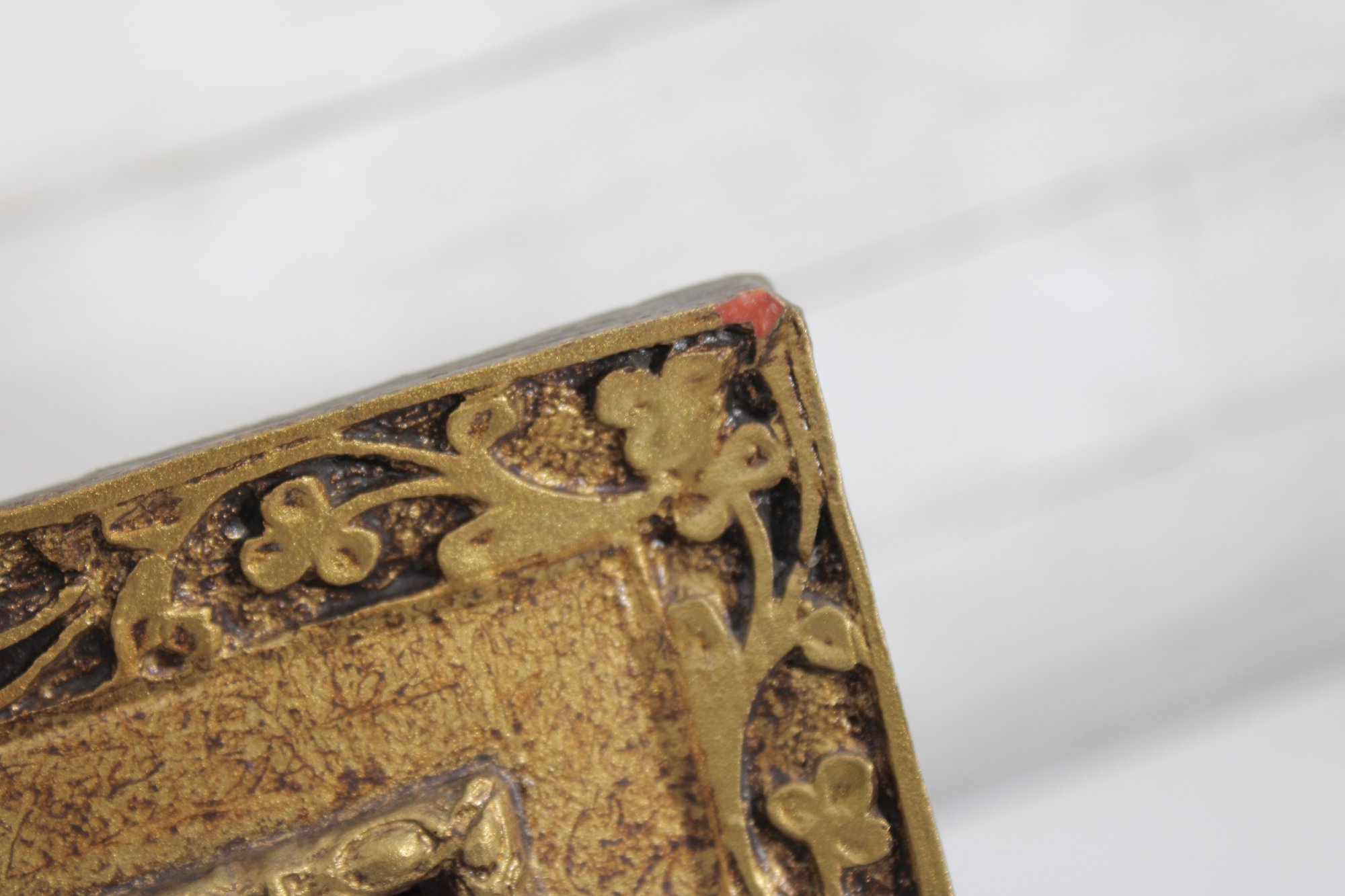 The print is beautifully presented in an ornate gold-tone frame featuring raised floral and scroll detailing, adding depth and antique appeal.