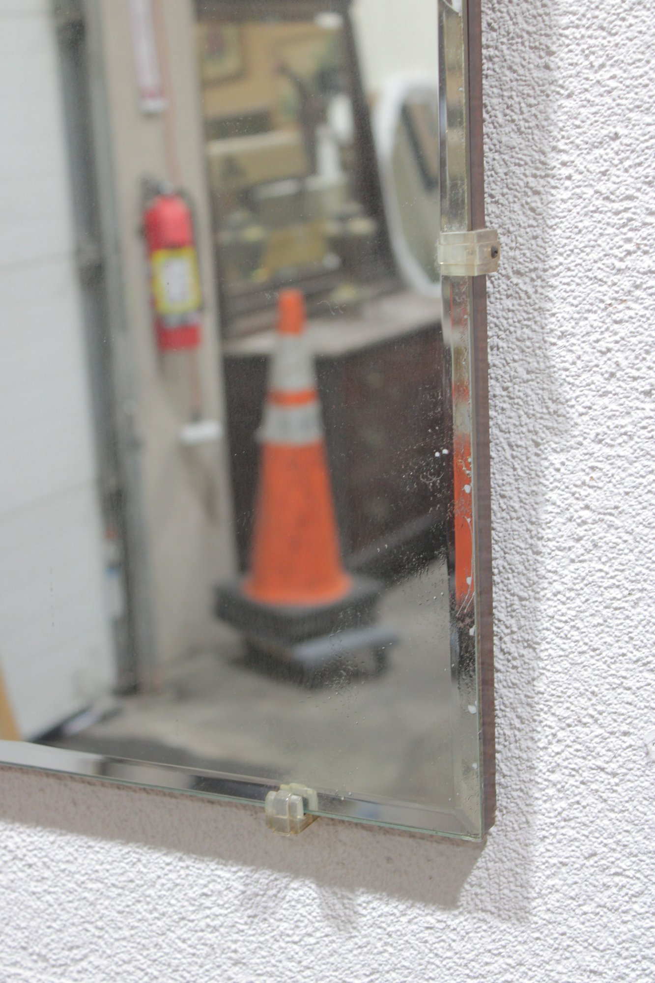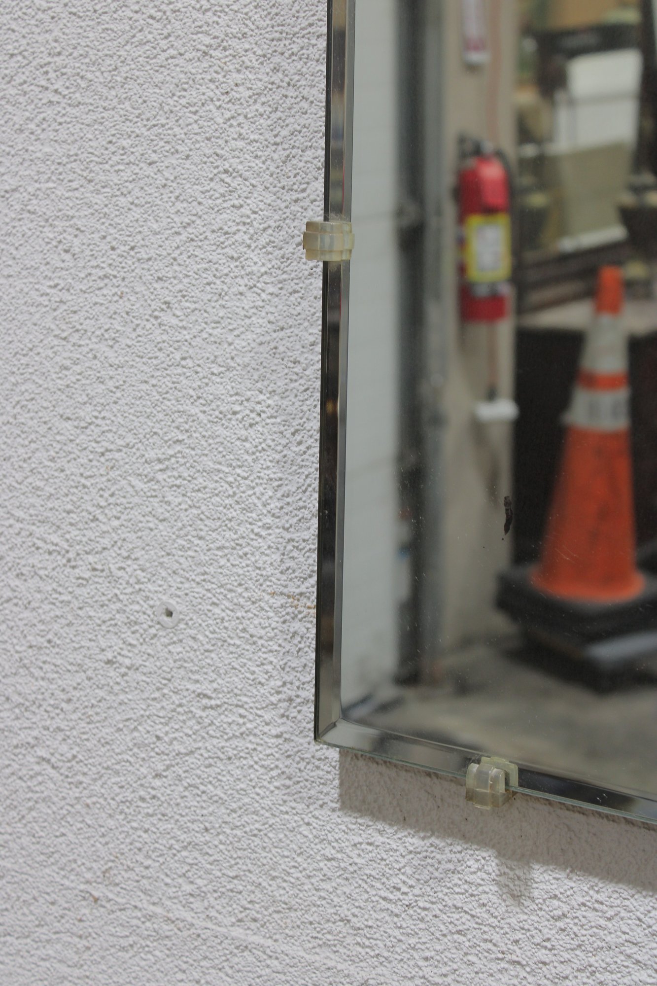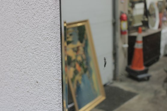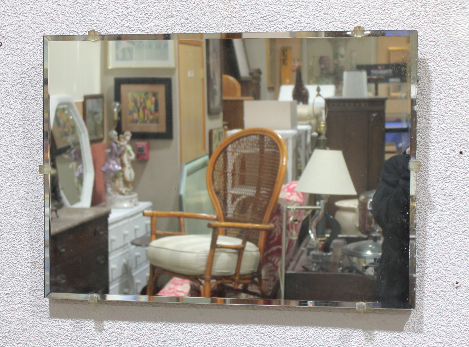 Classic vintage rectangular wall mirror featuring a clean frameless design secured with decorative brass clips. The simple, minimalist look makes this piece versatile enough to complement mid-century, modern, or traditional interiors.