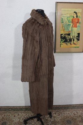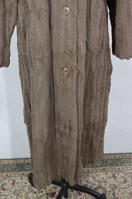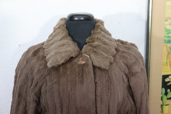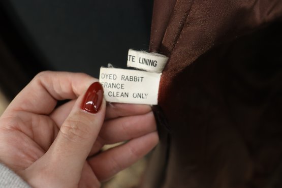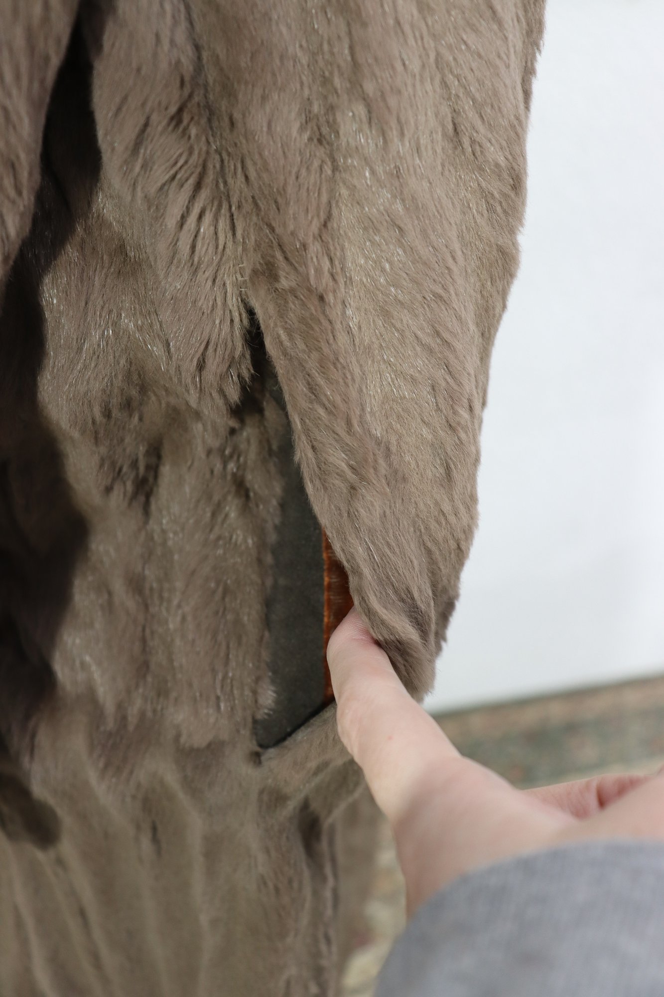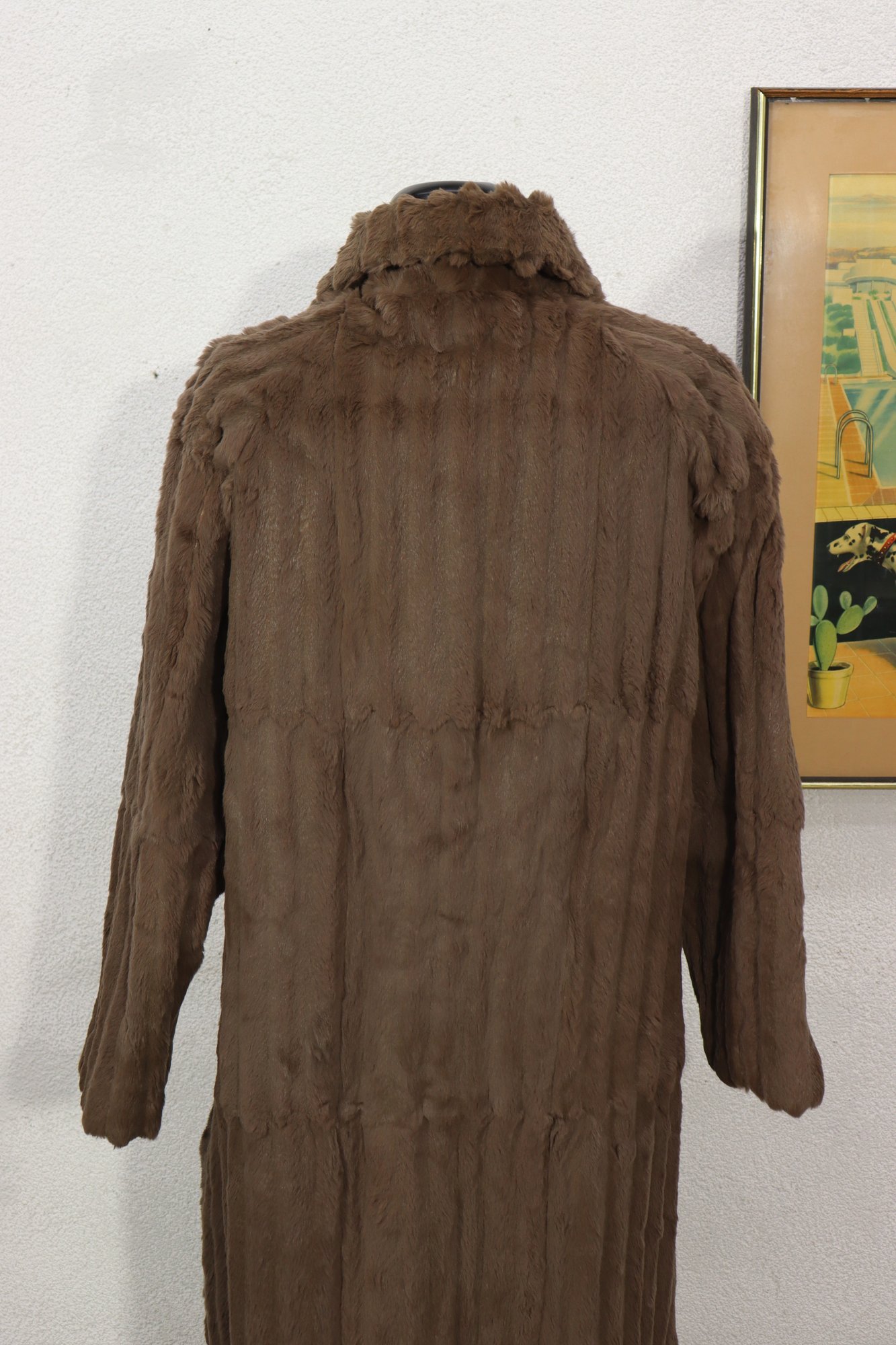 Elegant and timeless, this vintage full-length coat is crafted from dyed rabbit fur of French origin, offering a soft, lightweight warmth with a refined drape.