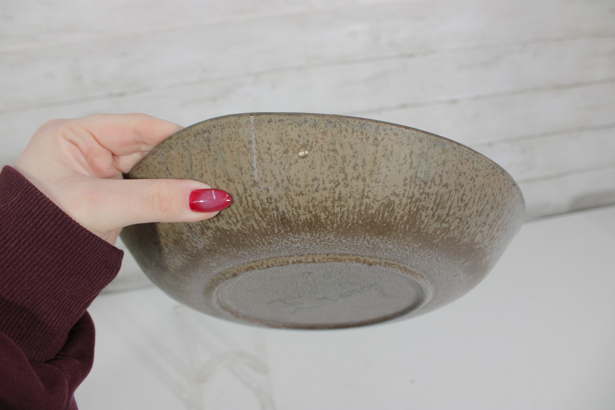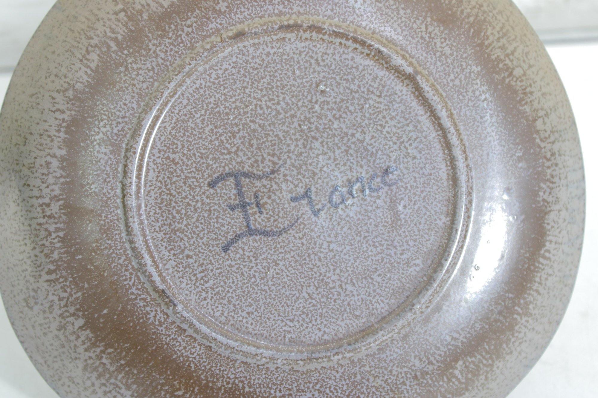 Measuring approximately 10.5 inches in diameter, this piece has a gently flared, shallow form reminiscent of a basket or display bowl. The underside is signed “France,” adding to its authenticity and collectible appeal.
