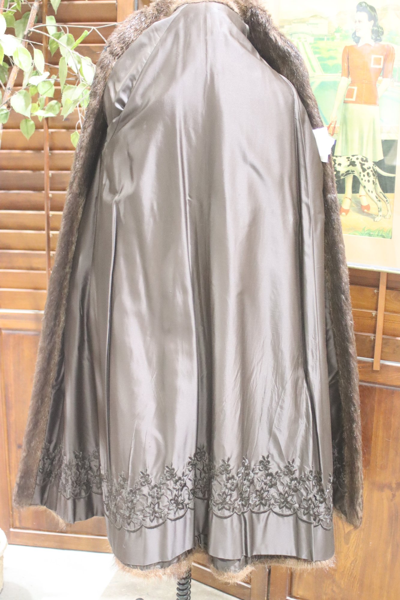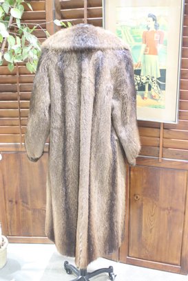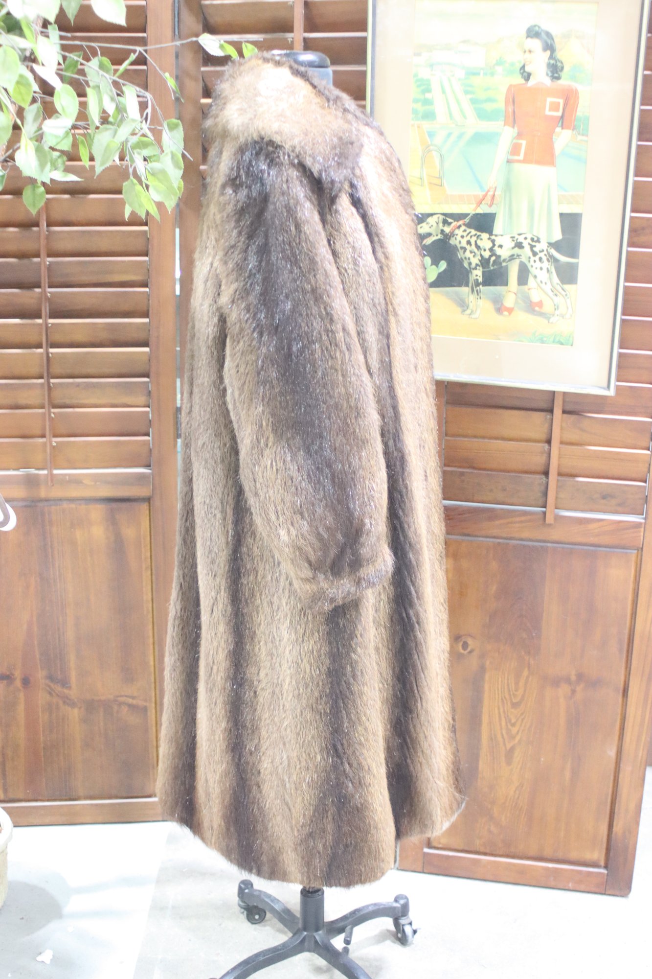 timeless luxury with this vintage full-length fur coat, a sophisticated and elegant statement piece. Featuring natural brown tones, a wide collar, and a beautifully detailed satin lining, this coat is perfect for classic winter styling.