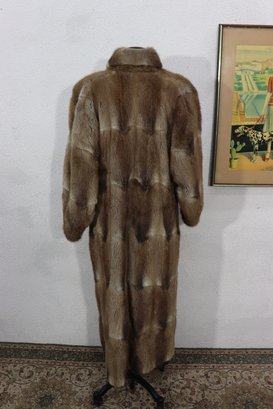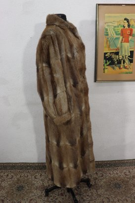 Step into timeless elegance with this vintage full-length genuine fur coat, crafted in a rich natural brown tone that radiates warmth and sophistication.