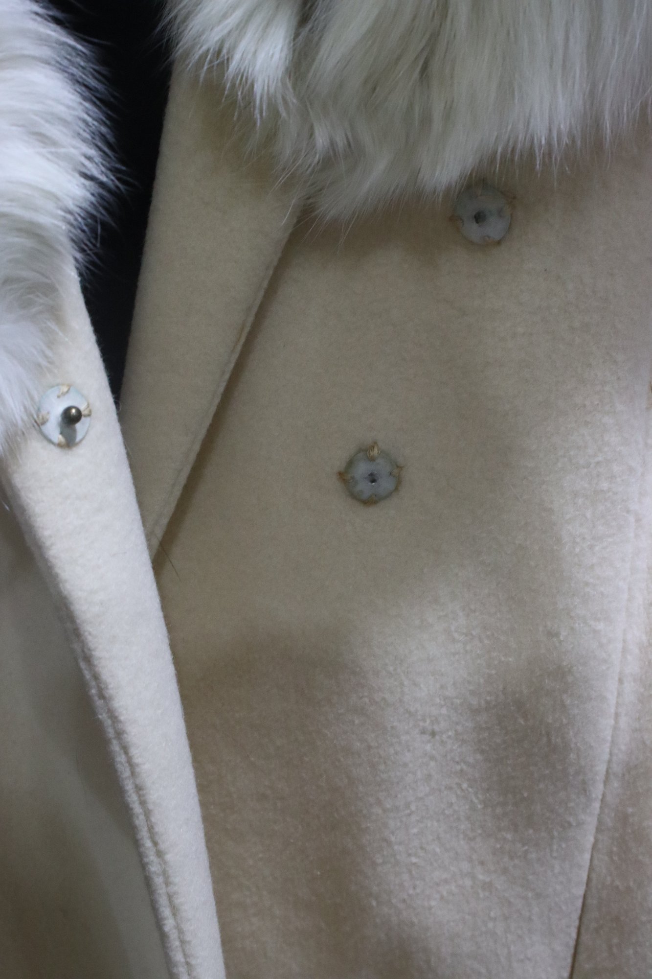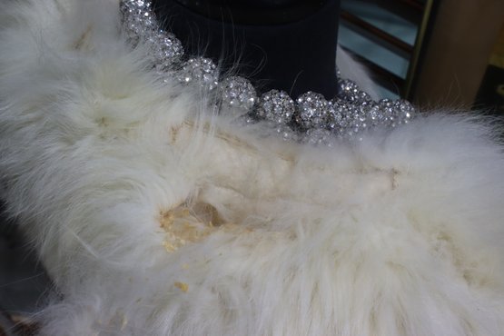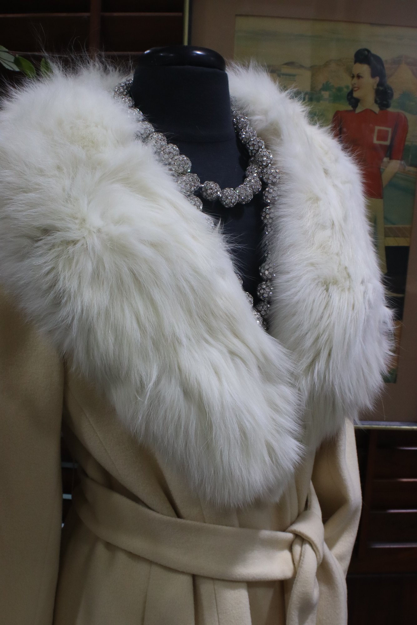 This coat is in overall good vintage condition, but please note that the fur collar is deteriorating/falling apart (see photos for details). Ideal for a restoration project or for those looking to replace the fur trim.
