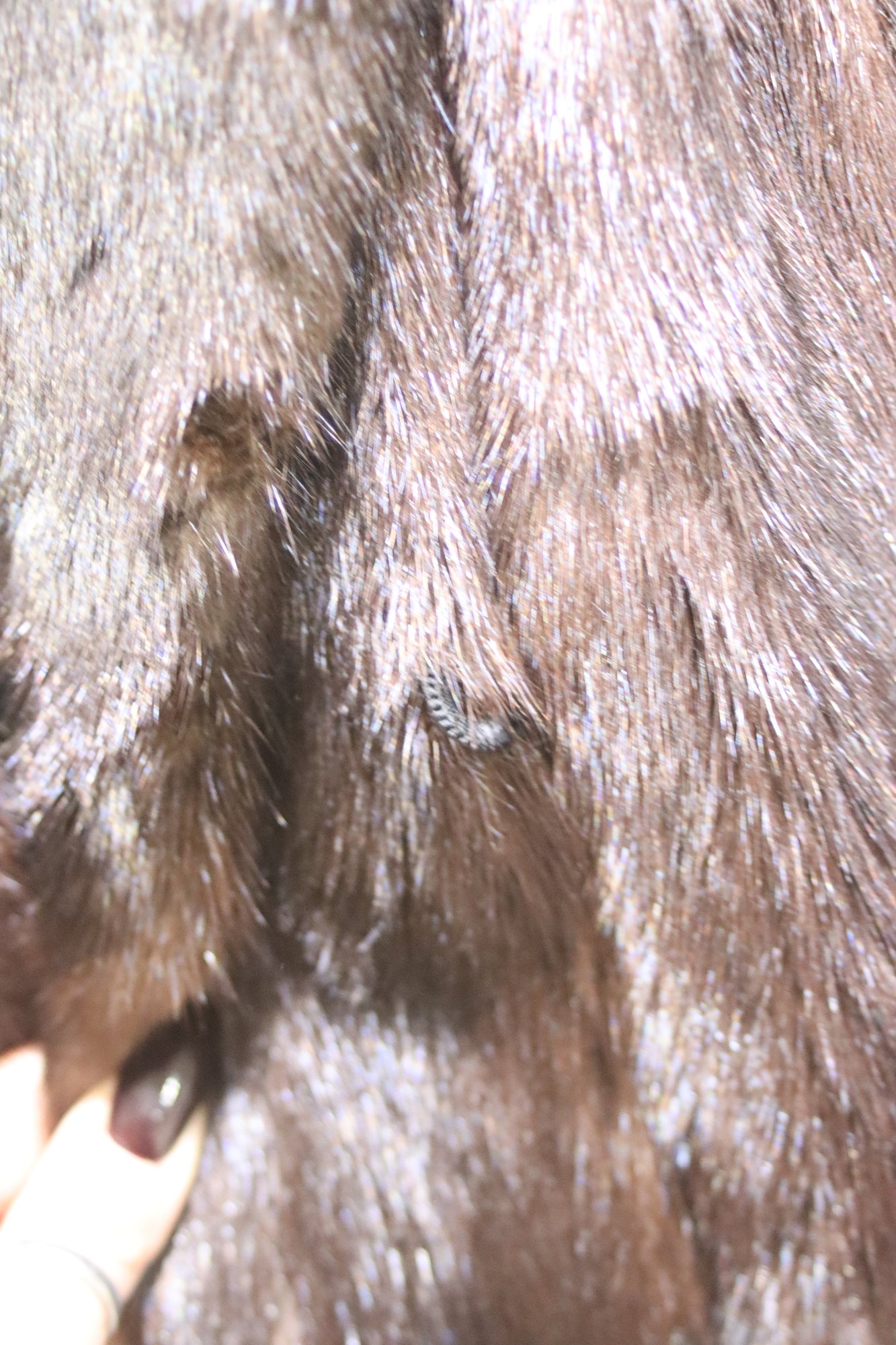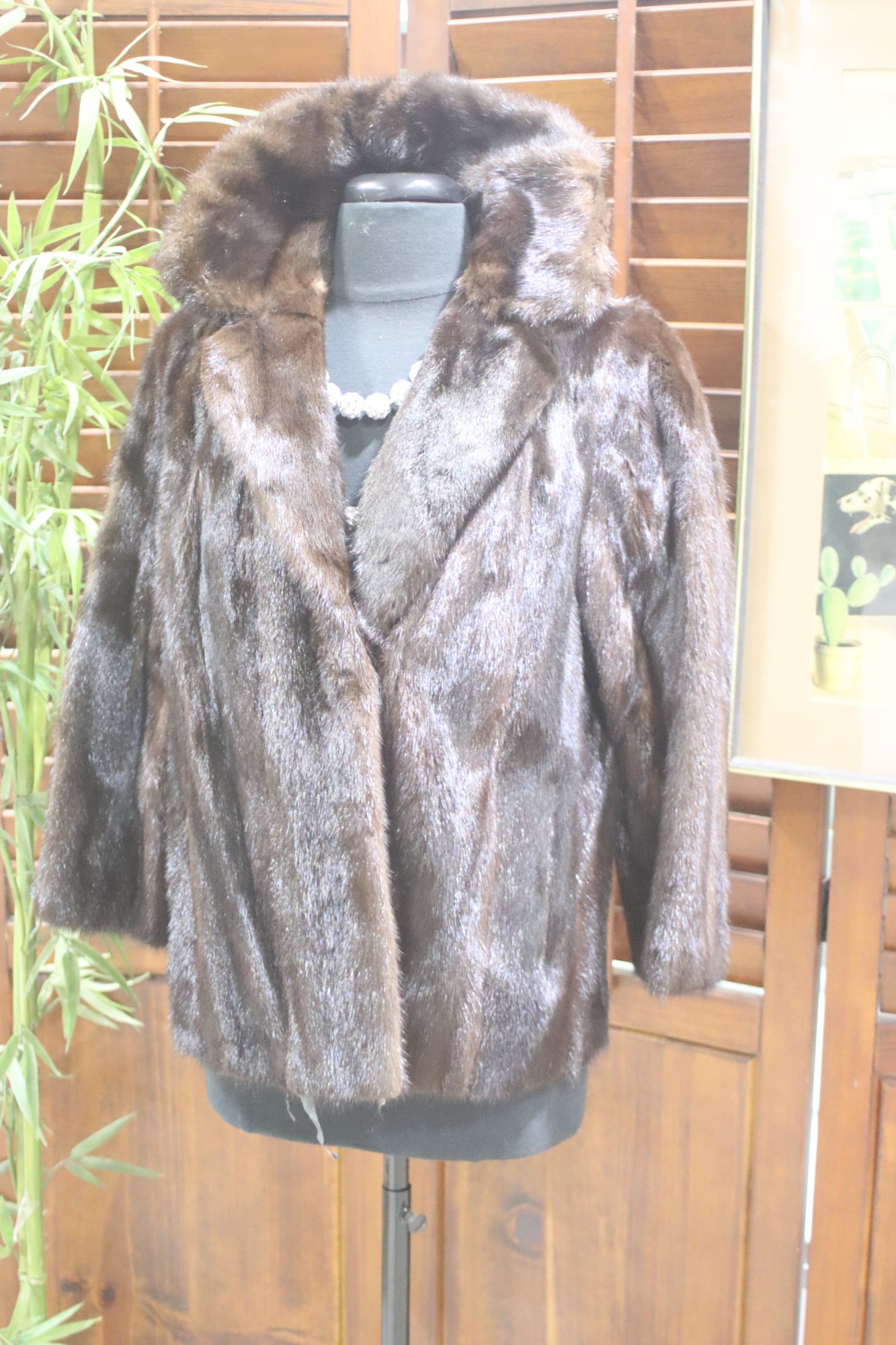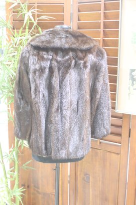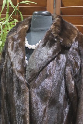 this gorgeous vintage mink fur jacket, exuding classic sophistication and luxurious warmth. This mid-length fur coat features soft, supple mink fur in a rich, deep brown hue, making it a timeless and elegant outerwear piece. Classic wide lapel collar, Single-breasted front closure
