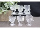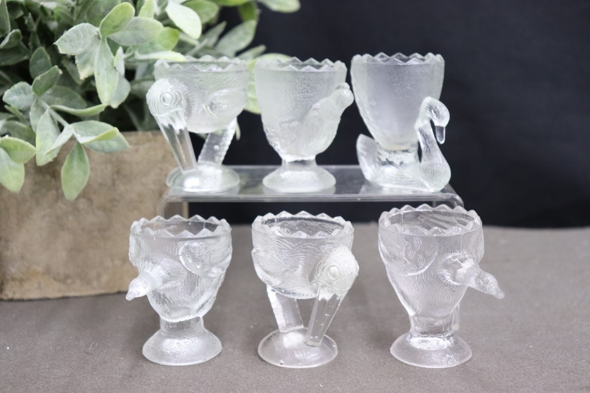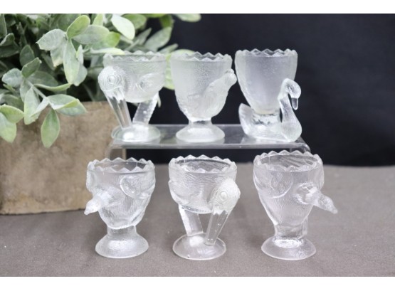 Vintage Glass Menagerie Set Of 6 Egg Cups, 2 Storks, 1 Chicken, 2 Geese, 1 Swan
