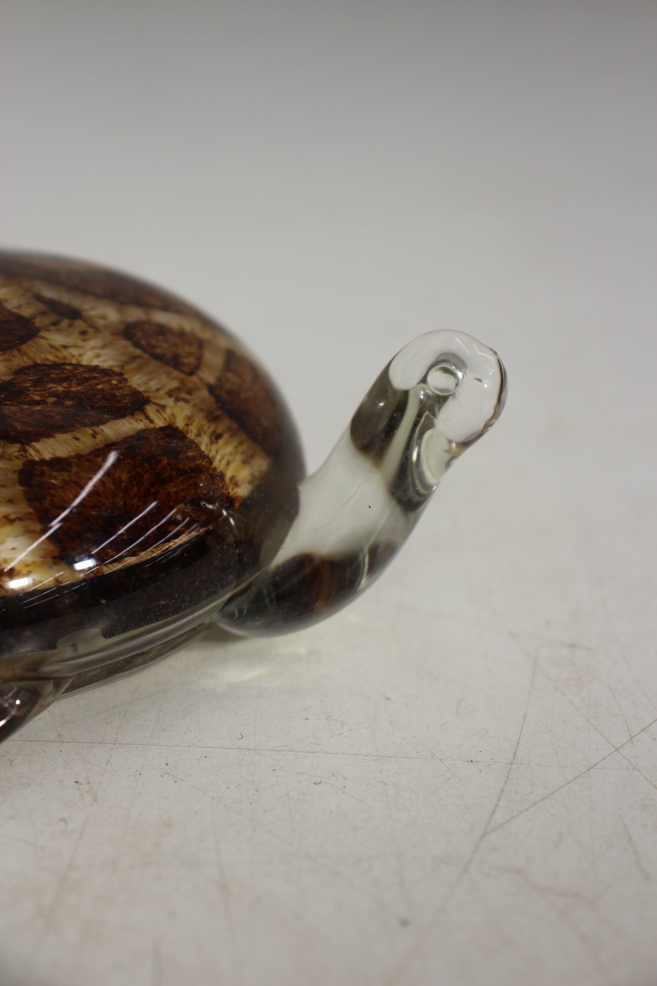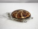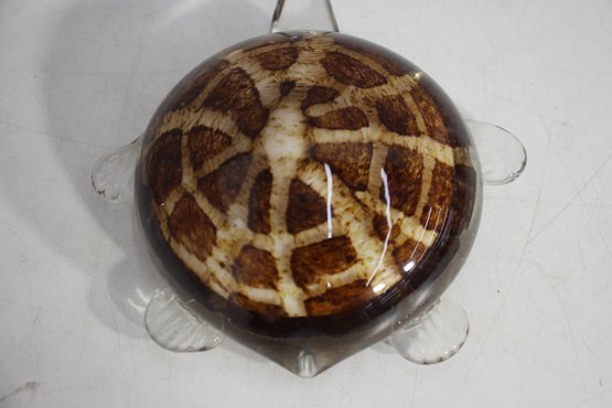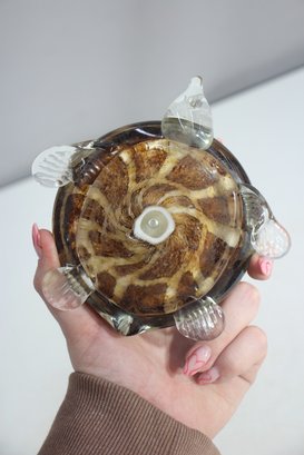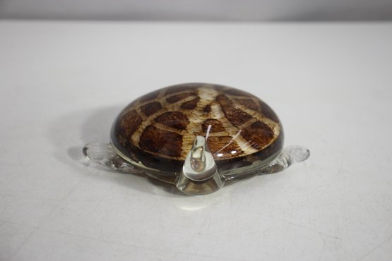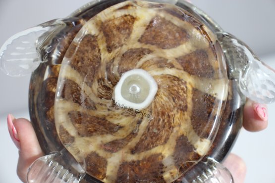 The shell’s rich brown and beige pattern mimics a real tortoise shell, adding depth and visual appeal. The turtle’s legs, tail, and head are sculpted from solid clear glass, giving it an elegant and delicate look. The flat base ensures stability, making it ideal for use on a desk, bookshelf, or display case.