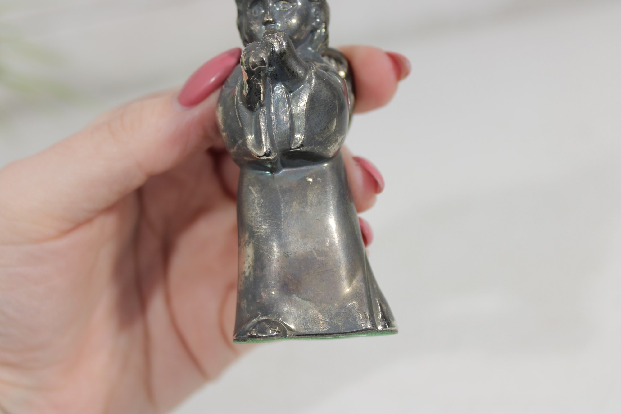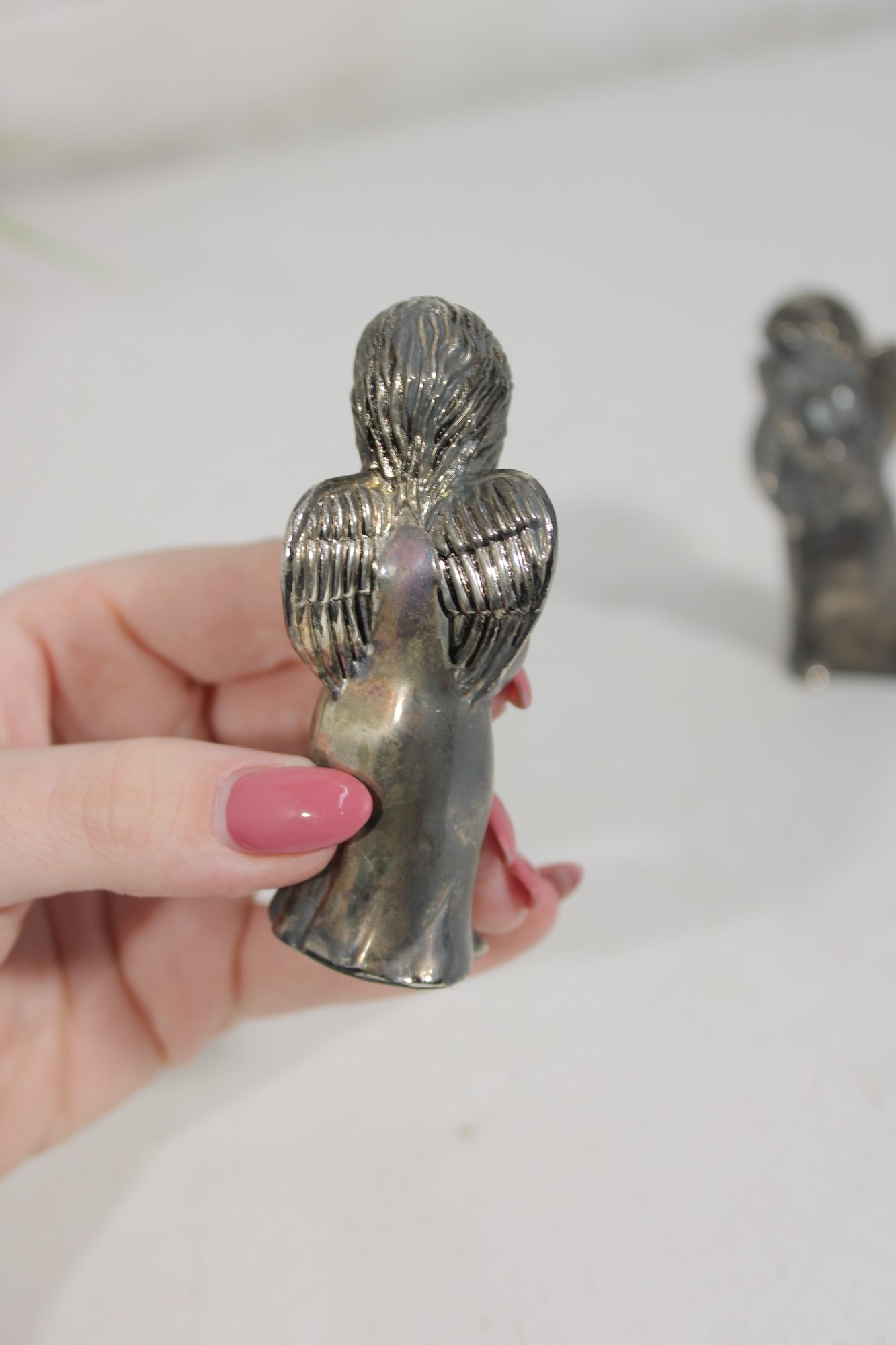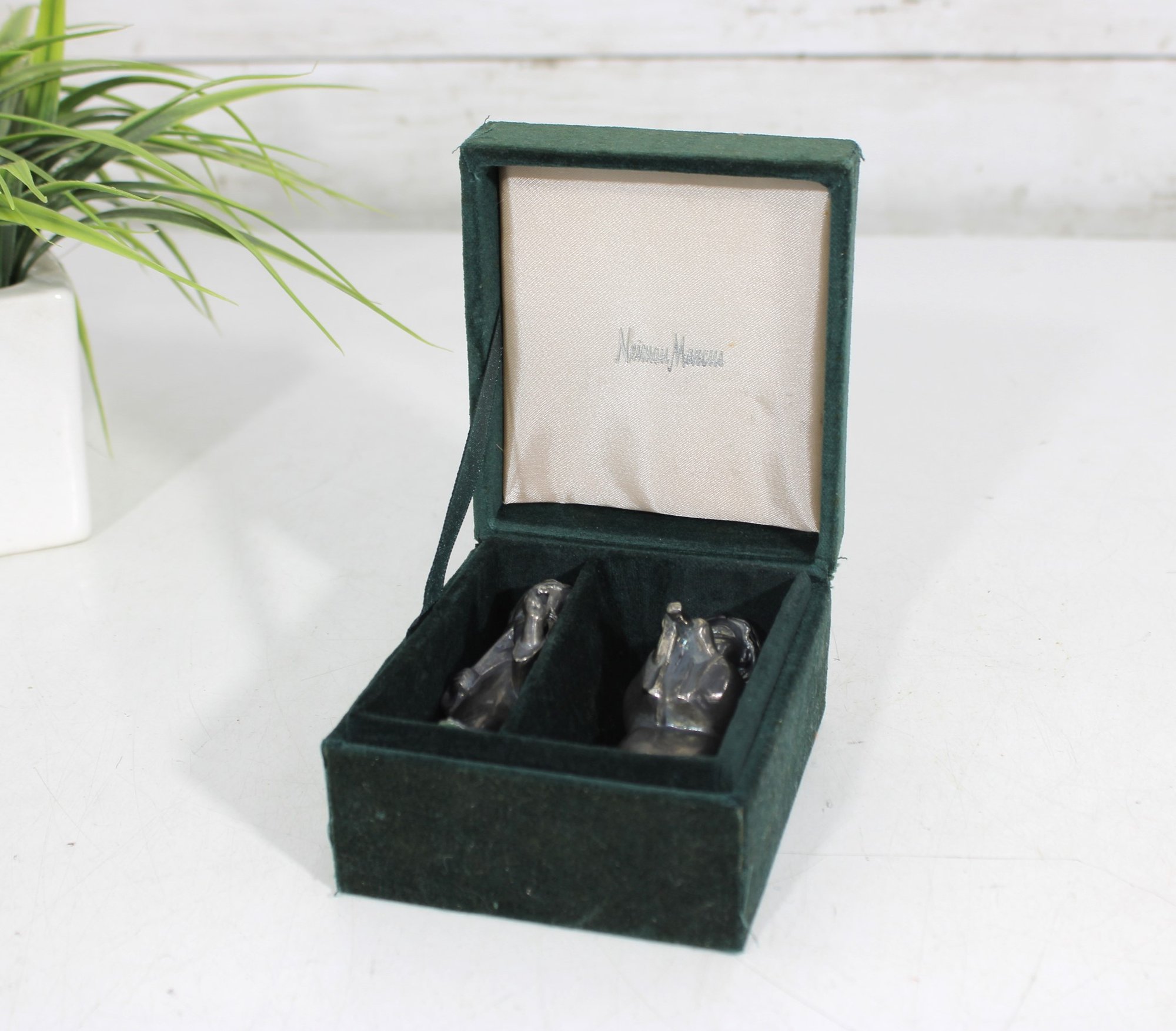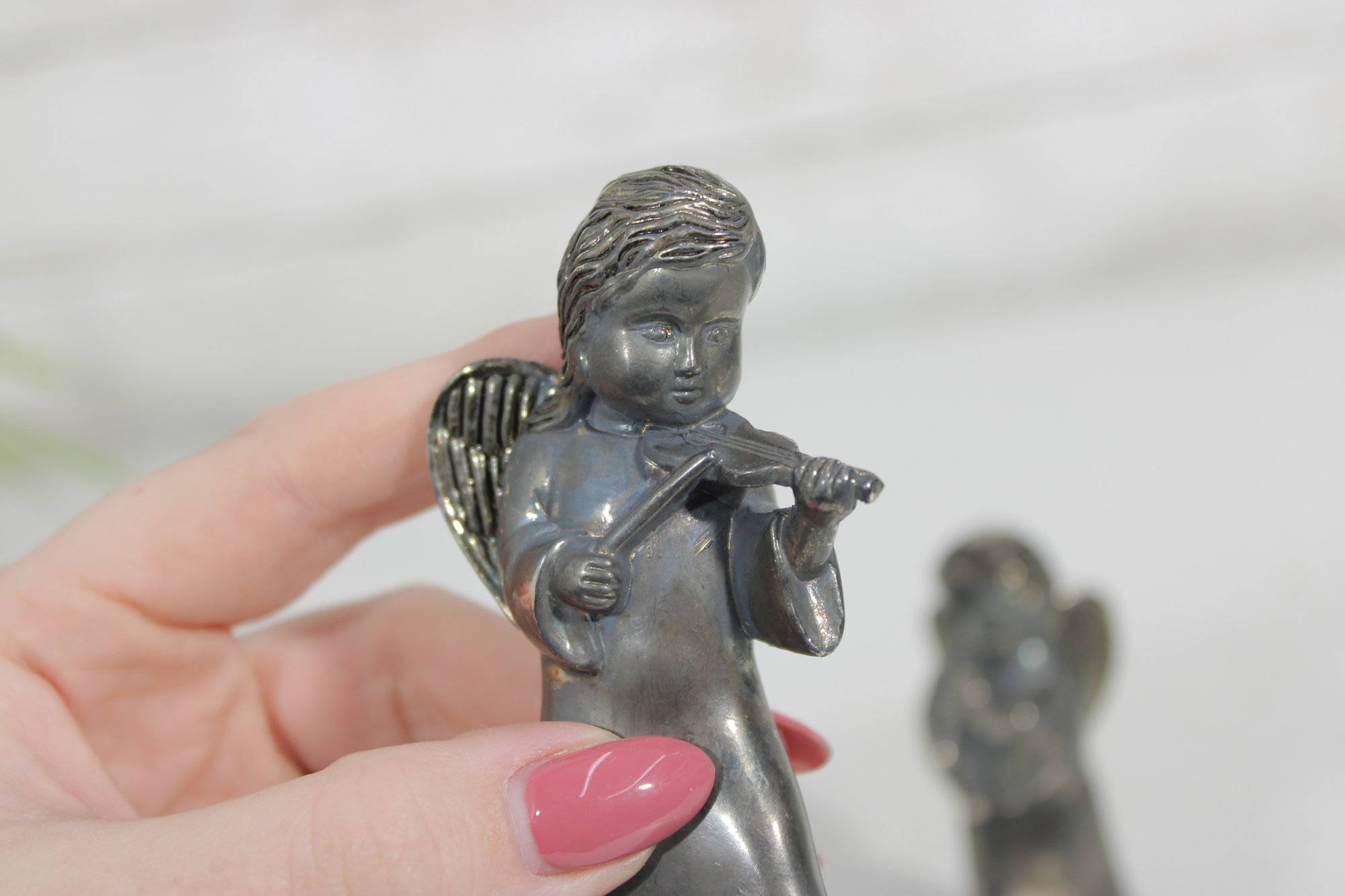 Charming vintage Godinger Silver Art salt and pepper shaker set featuring two angel figurines—one playing a flute and the other in a sweet, prayerful pose. Crafted in a silver-tone finish, these detailed figures double as both functional tableware and decorative collectibles.