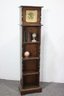 This unique vintage bookshelf features a grandfather clock-style design with a built-in brass-tone clock face at the top. The slim, tall profile offers a blend of functionality and decorative charm, making it perfect for displaying books, collectibles, or home décor accents. The scalloped side details and rich wood finish add to its classic appeal.