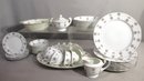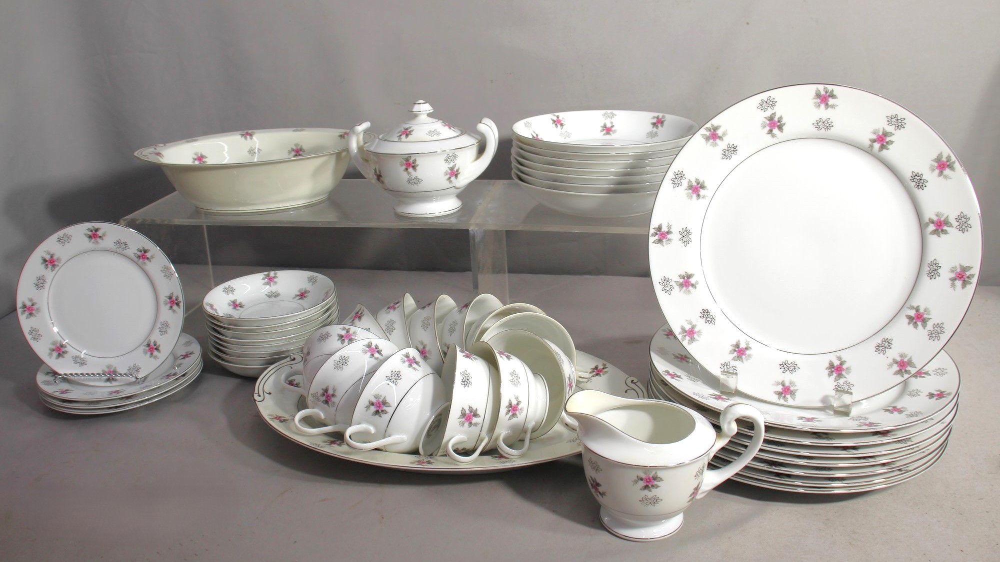 Vintage Green China 40s-Piece Dinnerware Set With Pink Floral Pattern, Made In Japan