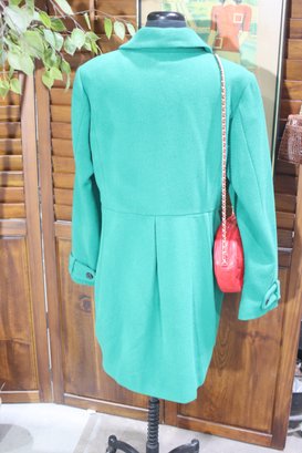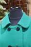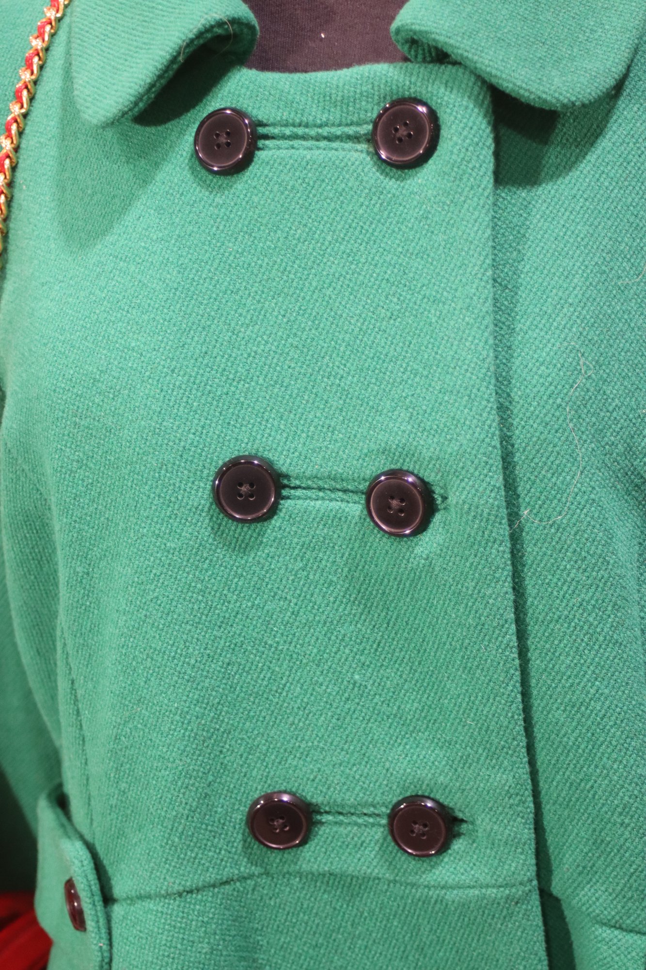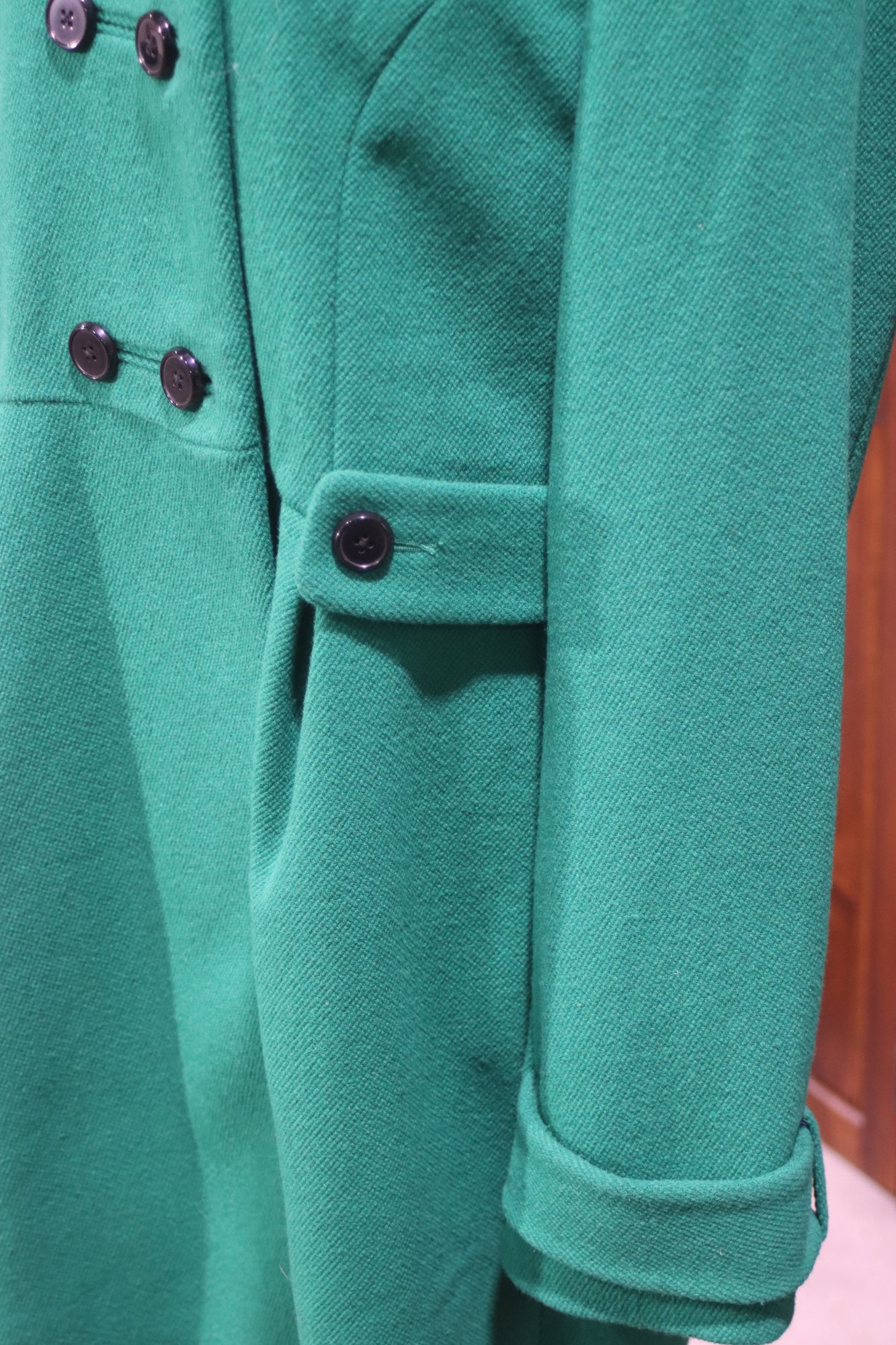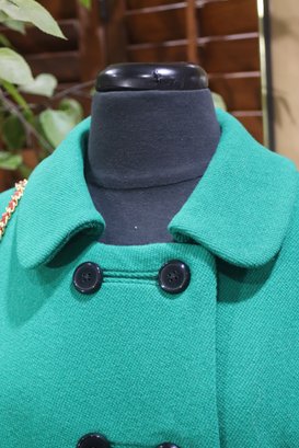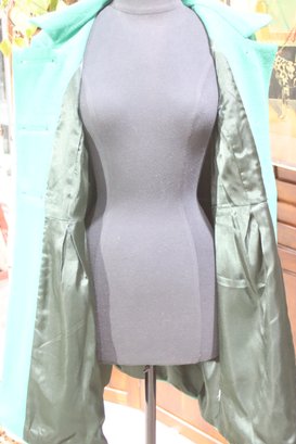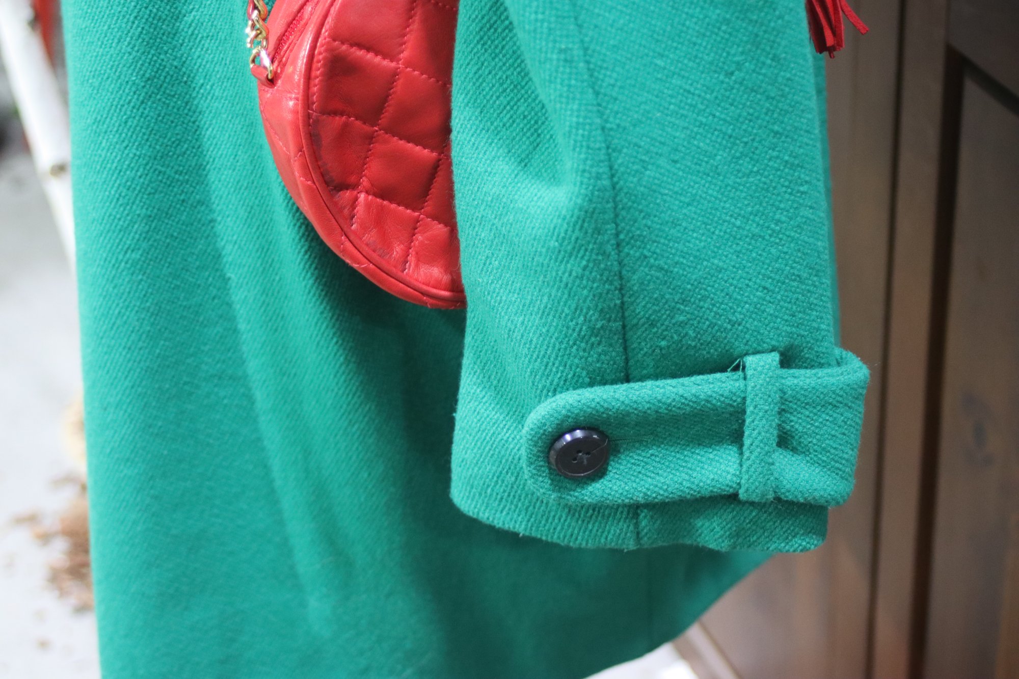 a bold fashion statement with this vintage green double-breasted wool coat. This elegant and timeless piece features a classic silhouette with beautiful tailoring, making it a chic addition to any wardrobe.