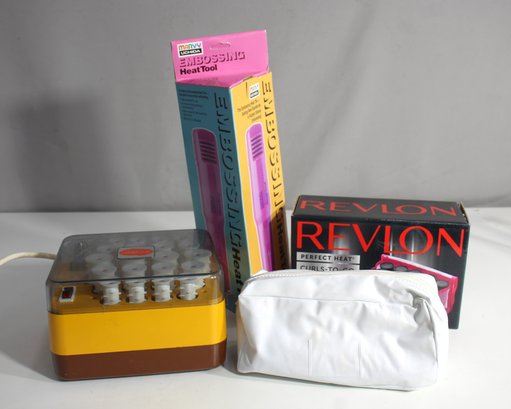 Vintage Hair Styling Lot - Sunbeam Rollers, Conair Curl N Carry, Revlon Travel Set & Embossing Heat Tool
