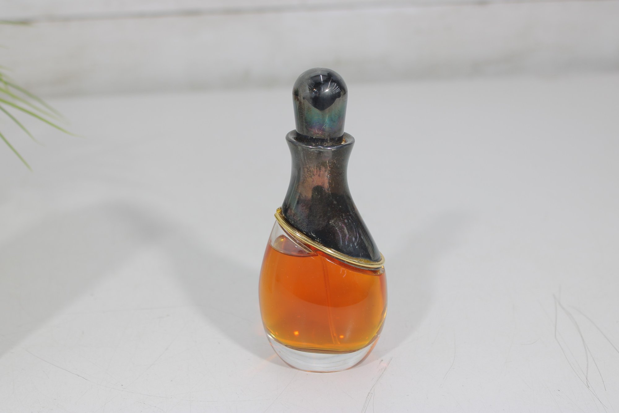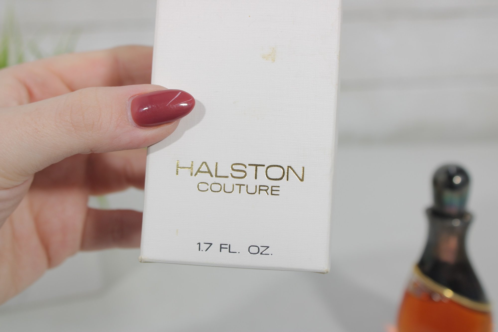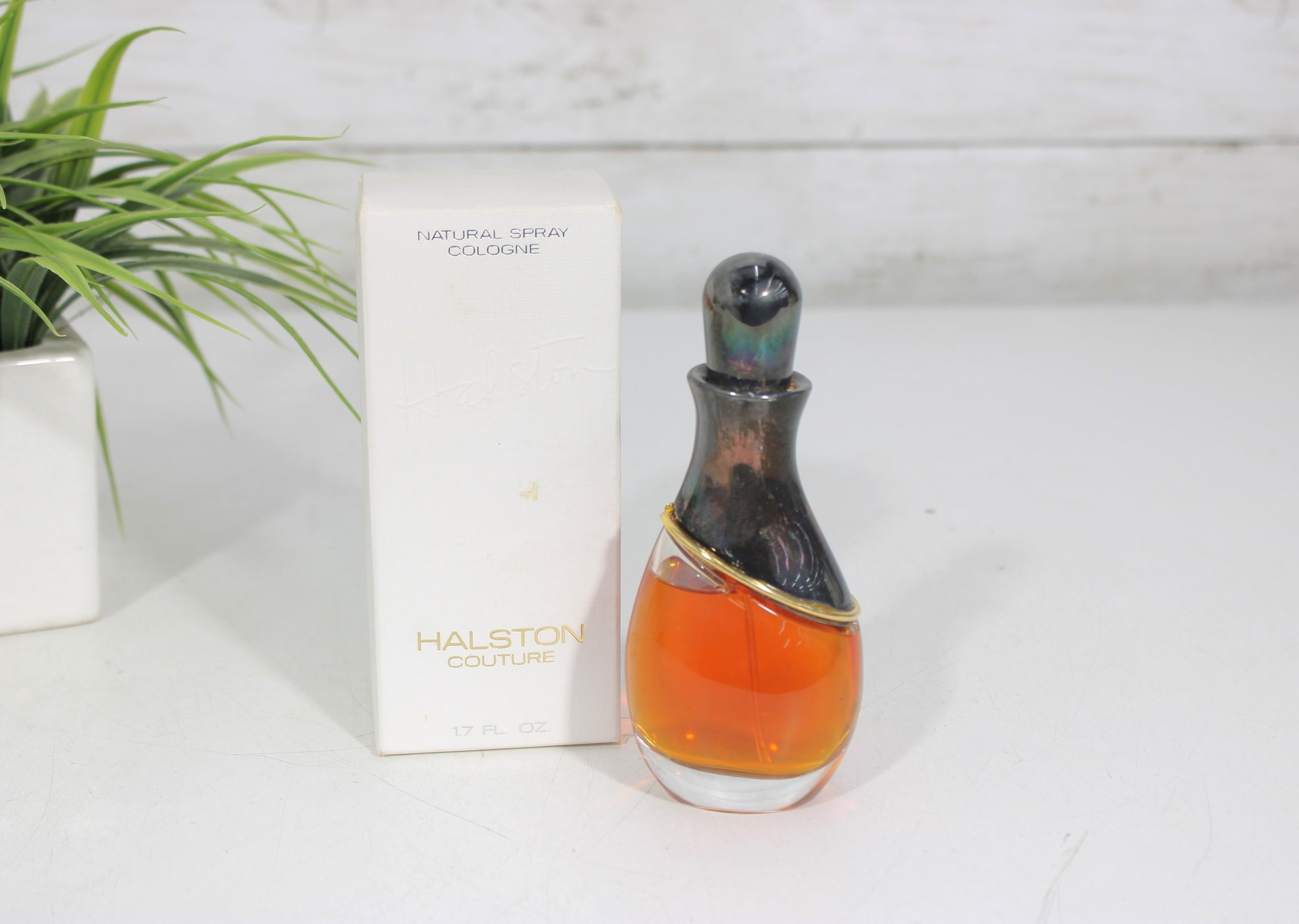 This classic designer fragrance features Halston’s signature sculptural bottle — an elegant, curved silhouette with chrome-tone cap and warm amber fragrance. A true representation of timeless 1980s–1990s designer style.
