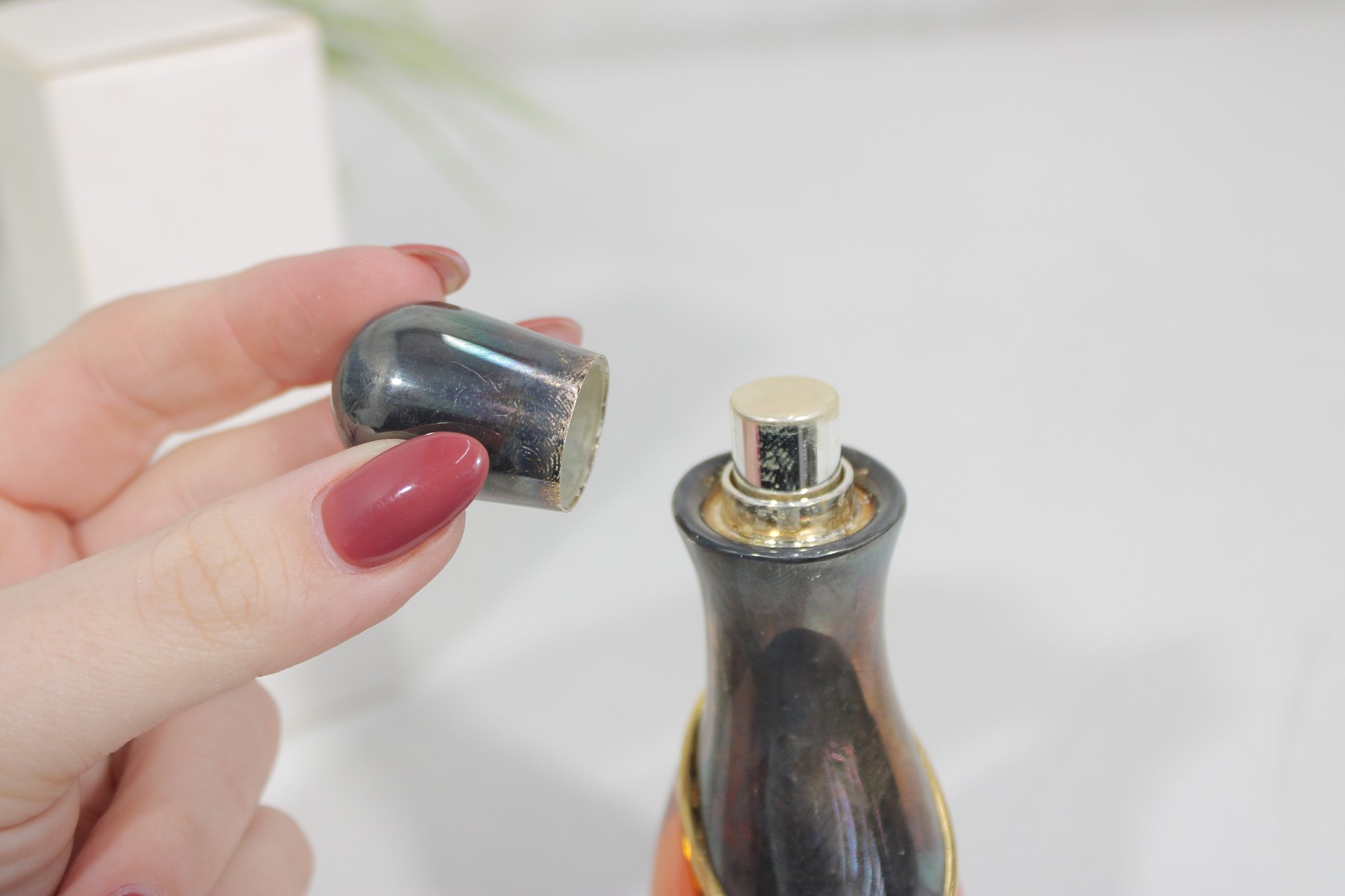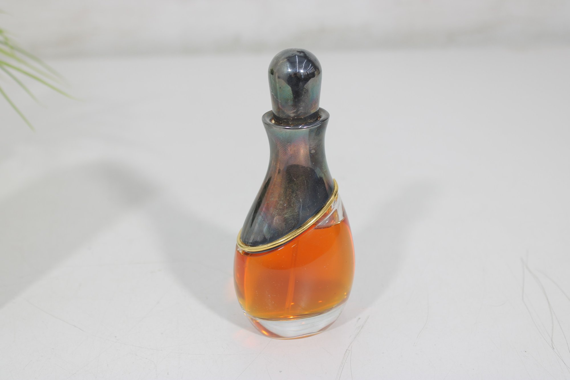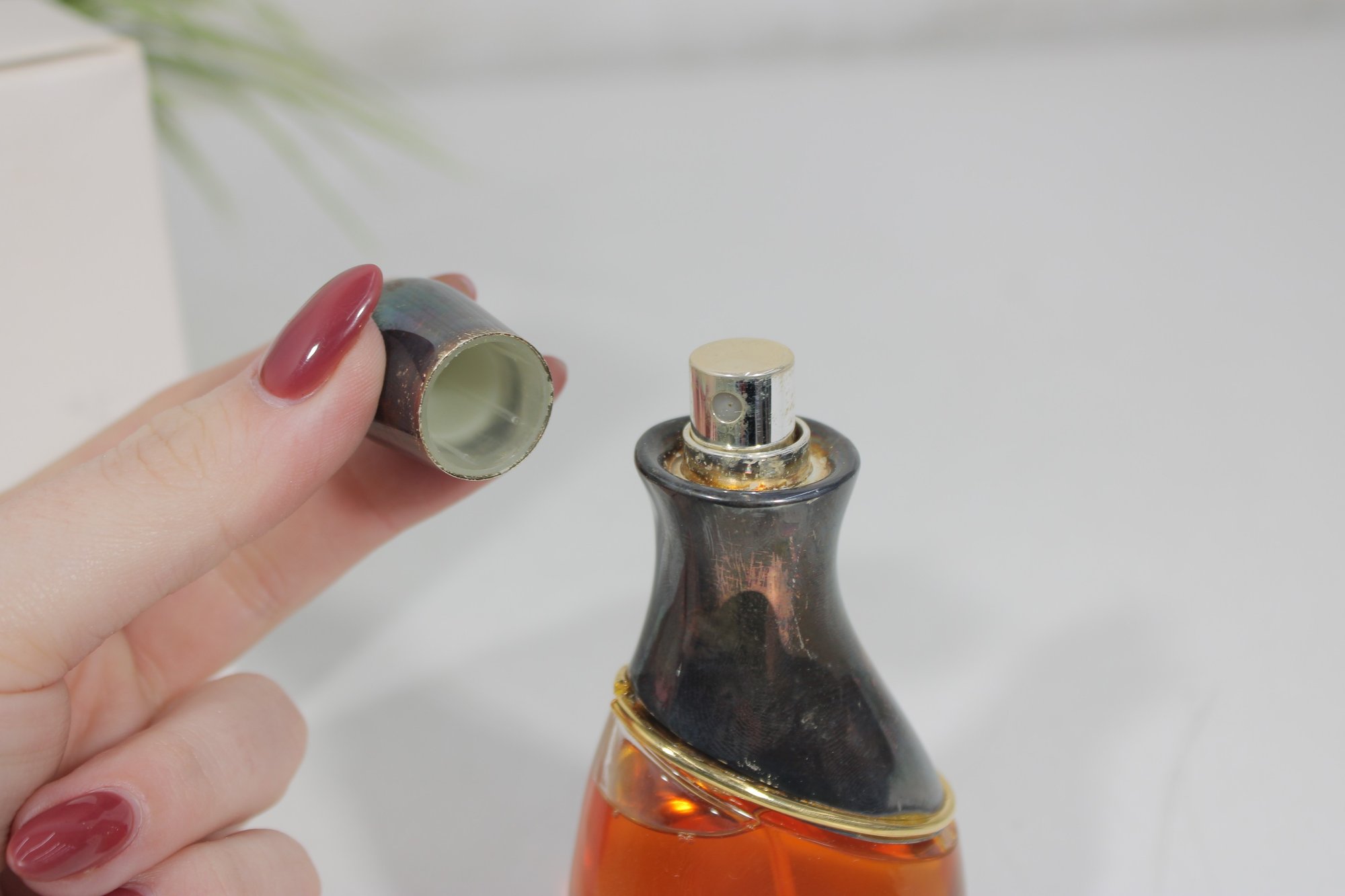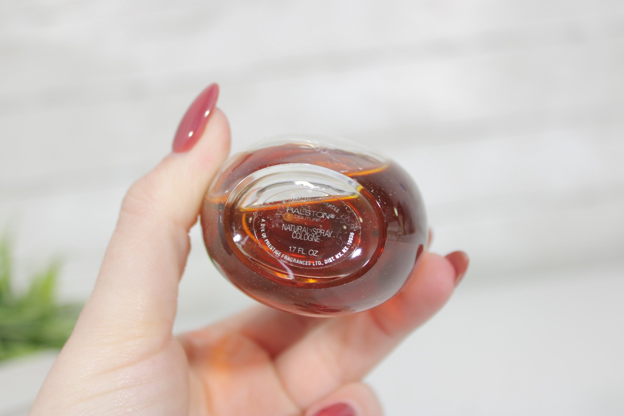This classic designer fragrance features Halston’s signature sculptural bottle — an elegant, curved silhouette with chrome-tone cap and warm amber fragrance. A true representation of timeless 1980s–1990s designer style.