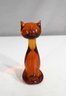 mid-century charm to your collection with this vintage hand blown amber glass cat figurine, standing approximately 6 inches tall. Featuring a sleek, stylized form with exaggerated ears and an elongated body, this piece beautifully captures the playful spirit of MCM (Mid-Century Modern) design.