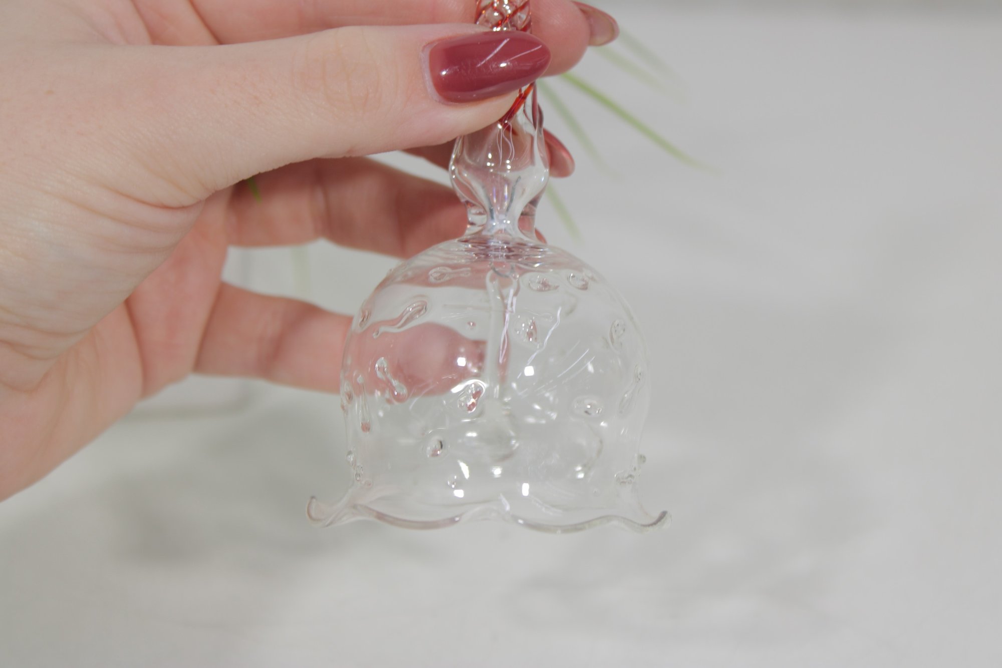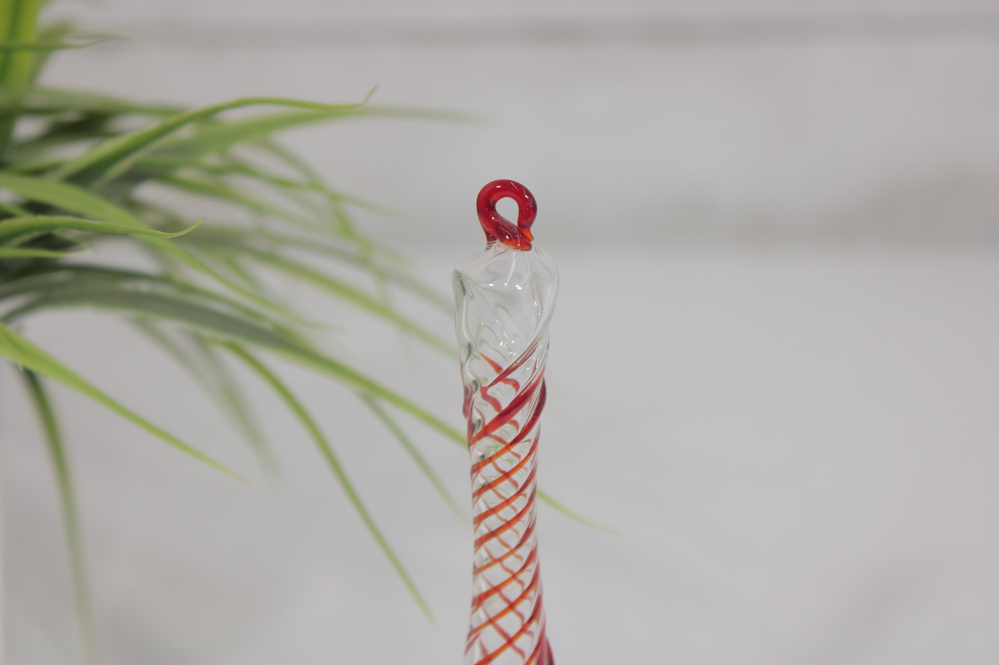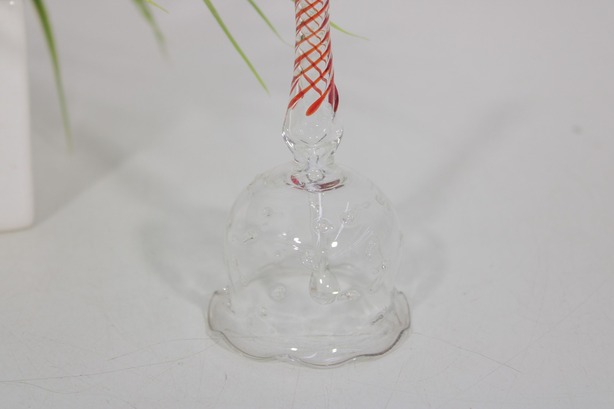 Vintage Hand Blown Art Glass Bell 6 Tall Clear W/ Red Swirl Handle