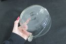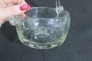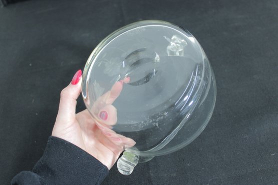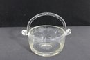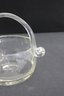 The rounded bowl form (approx. 7” wide x 6” high including handle) is complemented by applied glass handles with curled ends, showcasing quality craftsmanship. The sturdy base and smooth contours make it both decorative and functional.