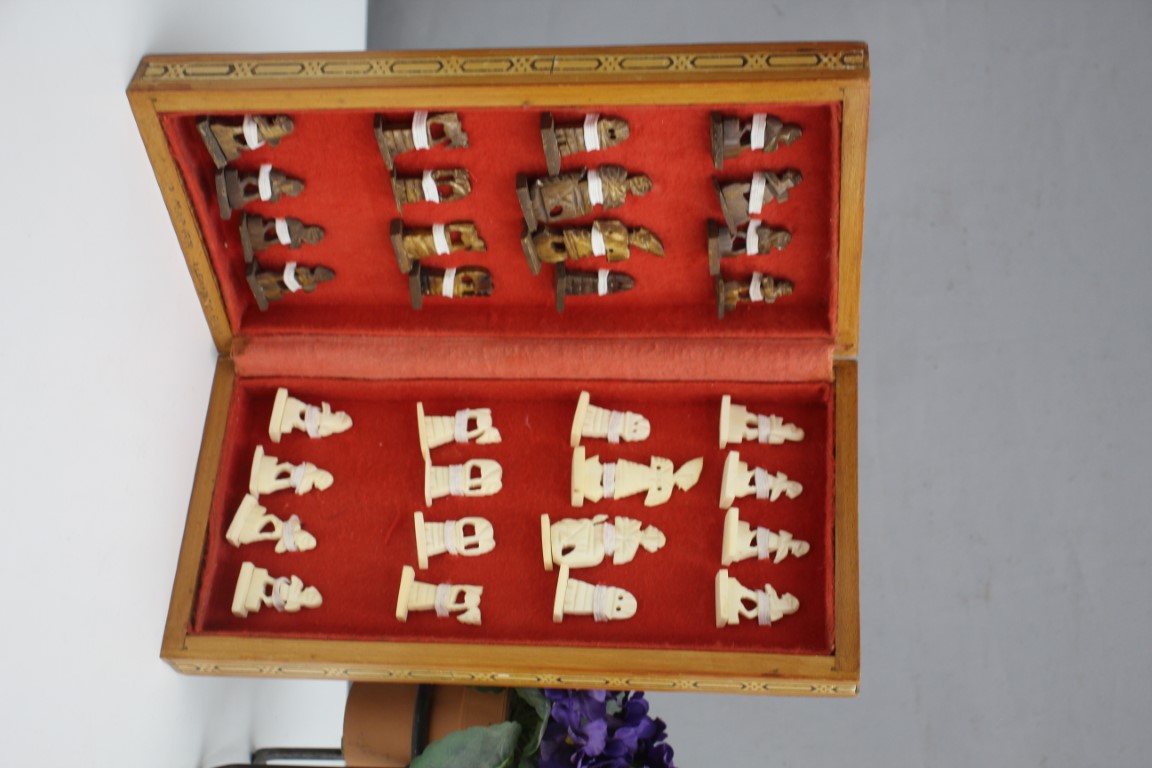 VINTAGE HAND CARVED CHESS SET WITH BOARD -12' Board