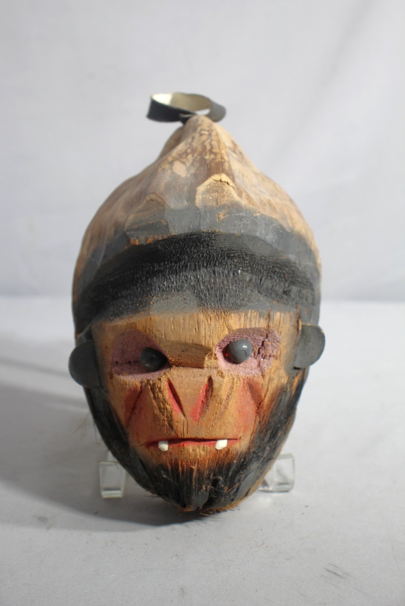 the coconut shell showcases traditional motifs and scenes, reflecting the artistry of its creator. The rich texture of the coconut shell adds depth and character to the piece, while the carved design highlights the craftsmanship and cultural significance.