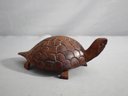 The figure features a lifelike rendition of a turtle, complete with a meticulously detailed shell pattern that adds a realistic touch to the piece. The carver has skillfully created a sense of texture and depth on the shell, making each scute stand out prominently against the smooth, polished finish of the wood.